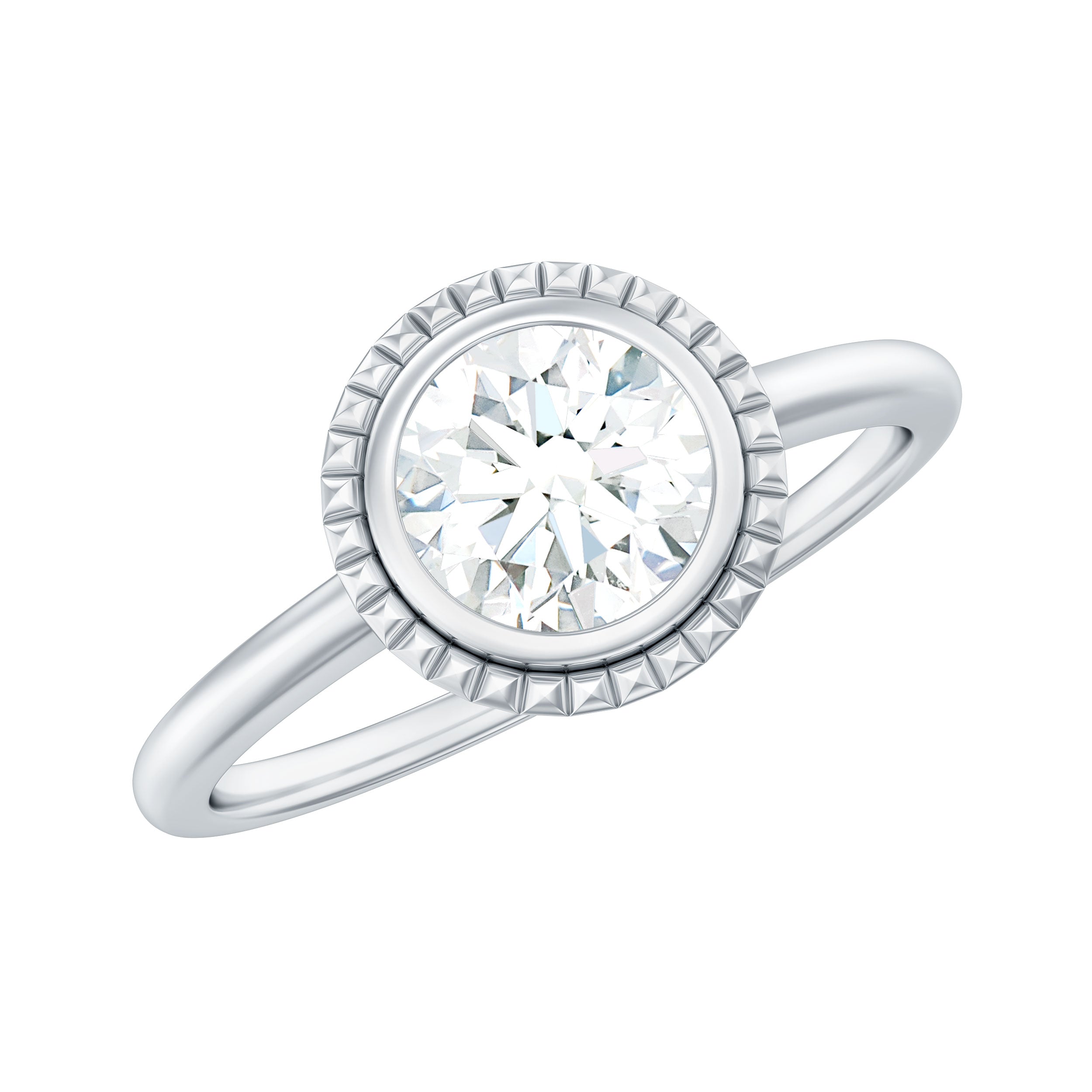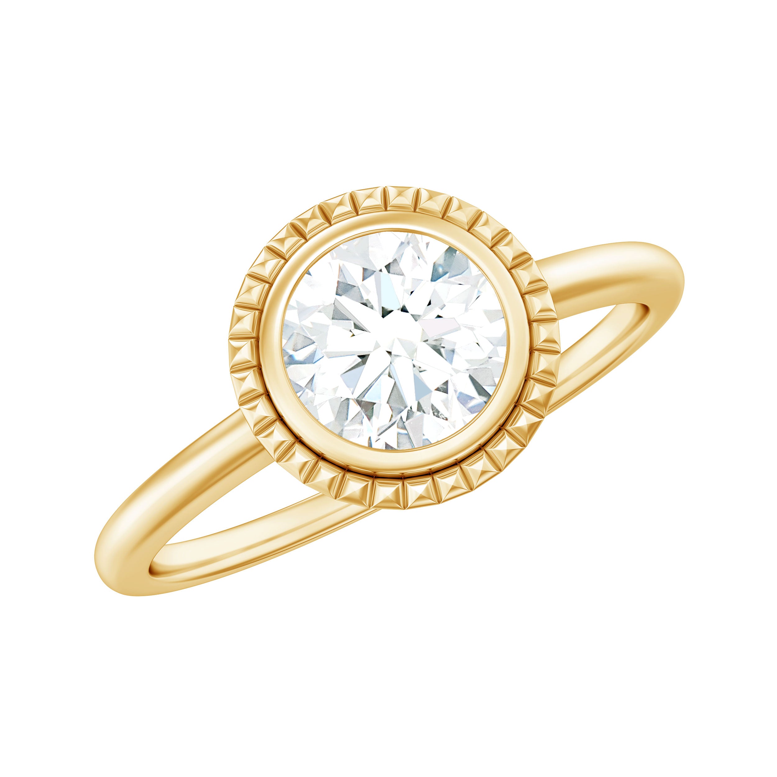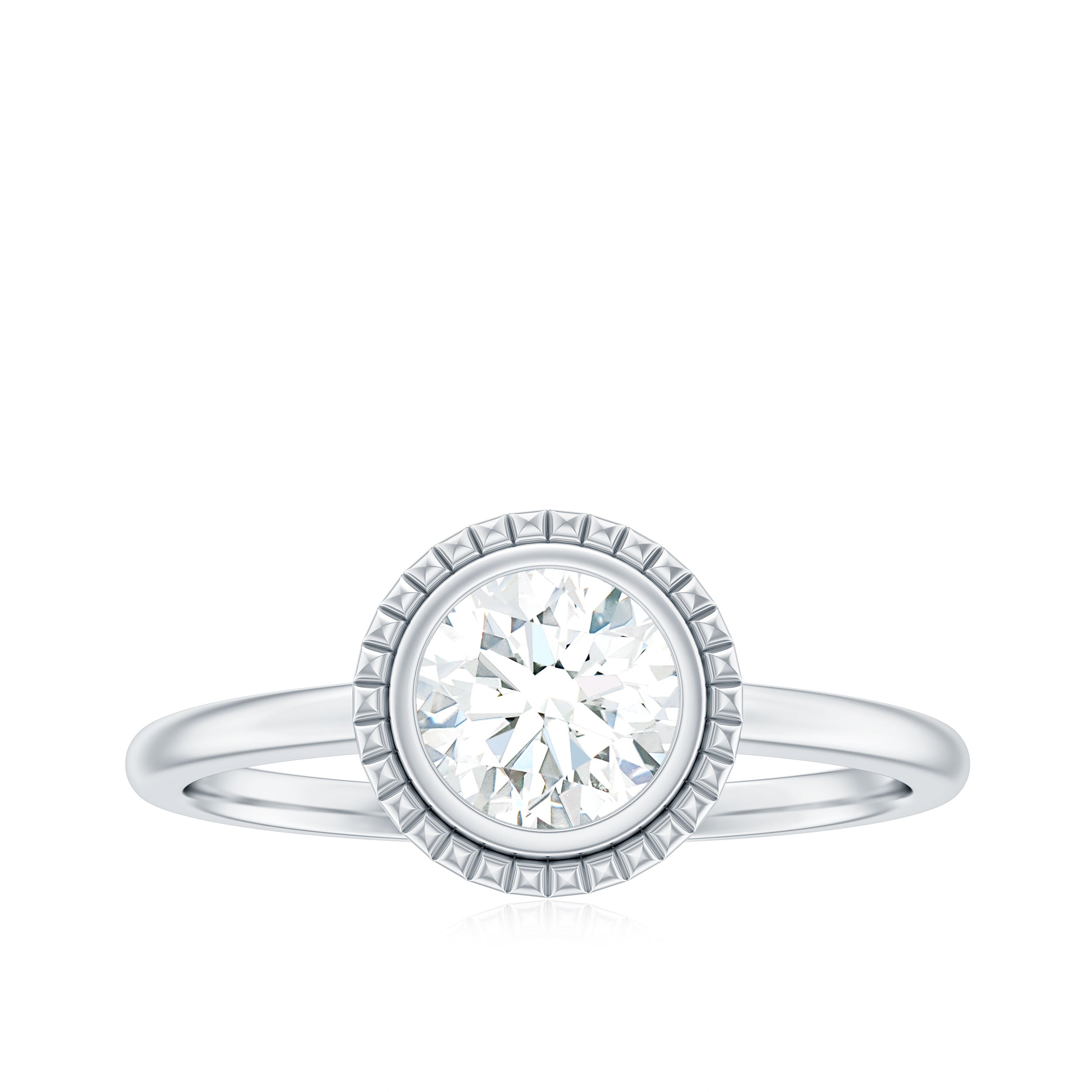 Symbolizing eternal love and telling your unique love story, this Moissanite Engagement Ring is the perfect way to start your journey together. Its elegant design catches the light with every move, featuring a D Color VS1 Clarity Moissanite that dazzles with its brilliance and shine. This Solitaire Engagement Ring showcases a 6 MM round cut moissanite in bezel setting surrounded with engraved style frame. Both classic and modern, this 1 Carat Moissanite Ring represents commitment and honors the lasting connection between you two. With its versatile design, this Round Moissanite Ring is both understated and chic, making it an excellent choice for a solitaire ring, a birthday gift, or everyday wear. We provide a variety of metal options for you to select from. Moreover, this Bezel Set Engagement Ring is available in different ring sizes according to US standards, ranging from 3 to 13. The timeless ring adds a hint of simplicity and classic elegance, making it perfect for any occasion. Its allure makes this Solitaire Moissanite Ring suitable for any event, whether it is an Engagement, Wedding, or Anniversary.