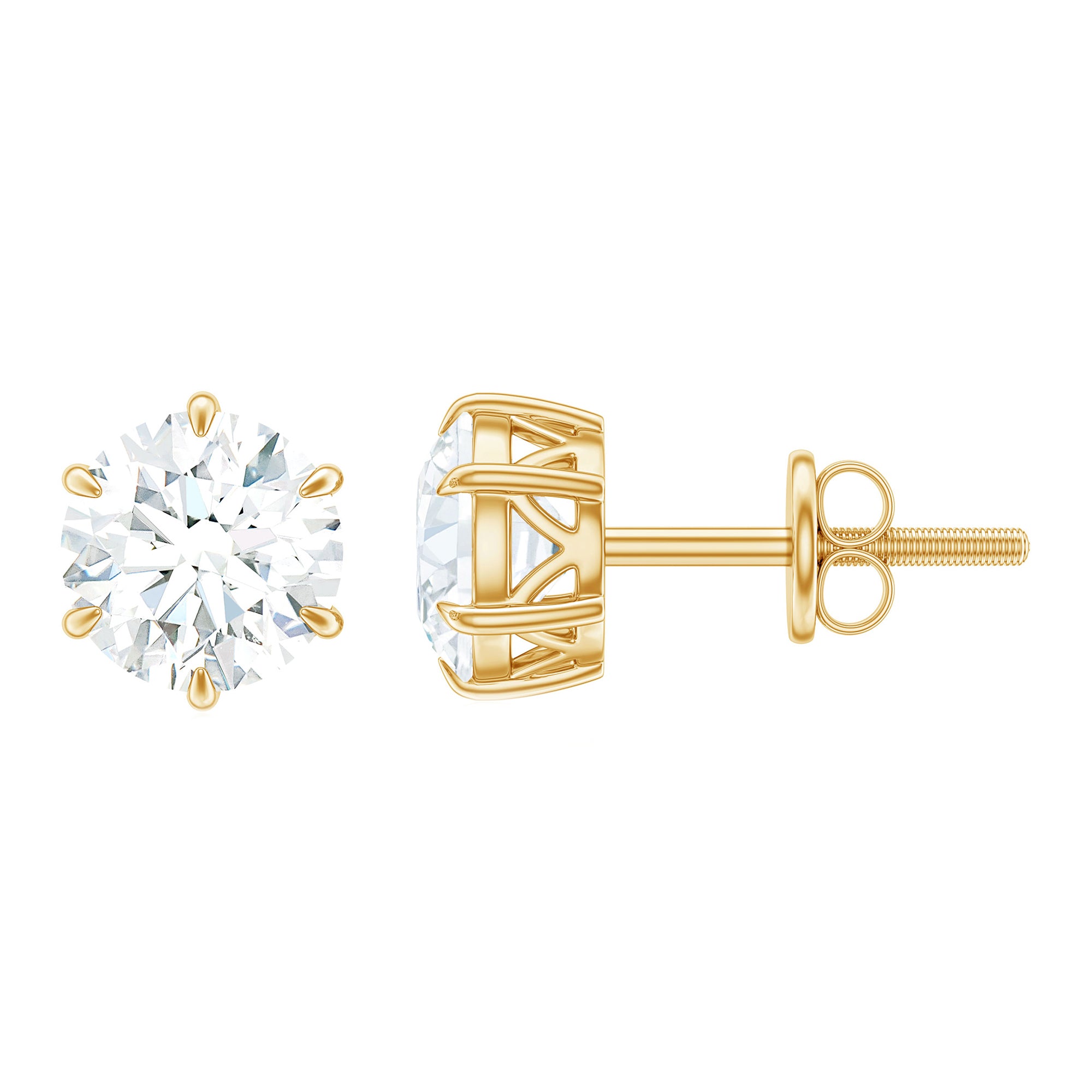 Claw Set Moissanite Solitaire Stud Earrings with Screw Backs