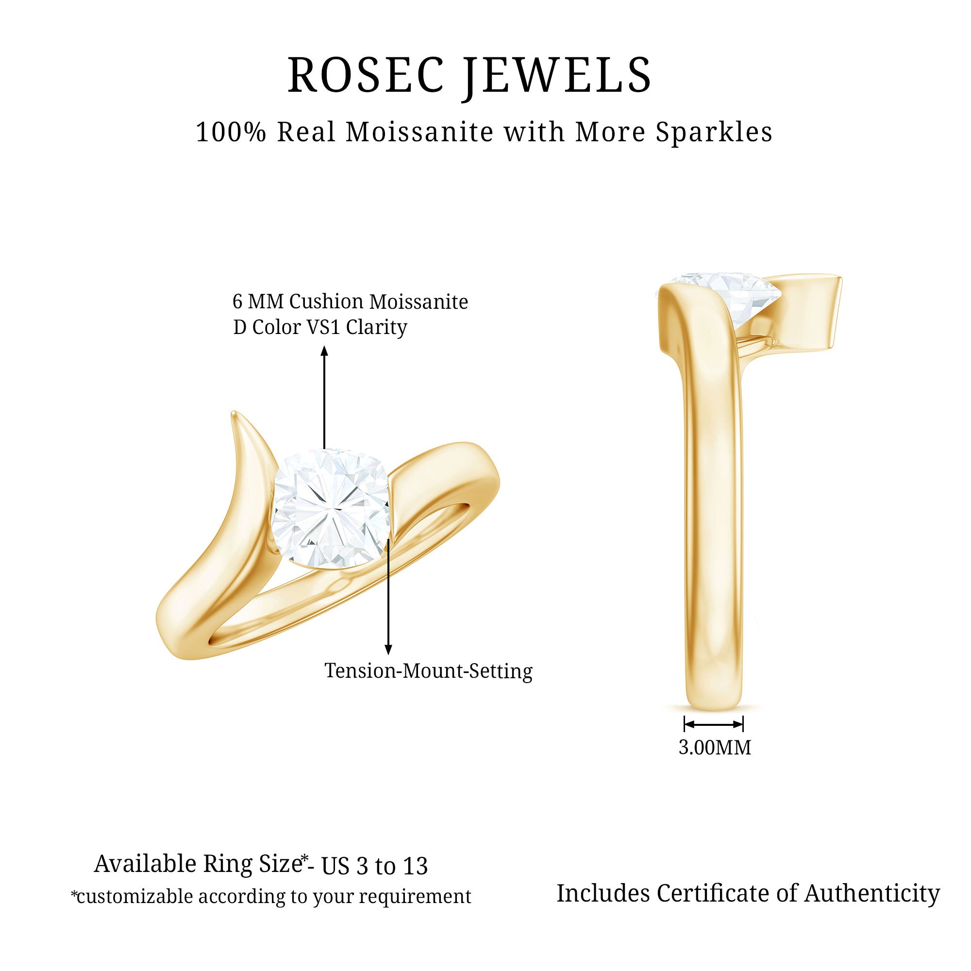 6X6 MM Cushion Cut Moissanite Solitaire Engagement Ring with Bypass Shank