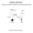 Make your look complete with these Black Opal Earrings, which are crafted to represent strength and creativity. These earrings feature a 6X8 MM Pear Shape Black Opal encircled with petite Moissanite embracing the beauty. These Drop Earrings dangle with a bail studded with smaller moissanites and crafted with 14K White Gold Plated Silver. These Earrings with Screw on Backs ensure the comfort and security. Grab these earrings and amplify your bold fashion with the classic shine of AAA Quality Black Opal. These earrings will be delivered to you with a certificate of authenticity.