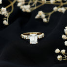 6X8 MM Emerald Cut Lab Grown Diamond Engagement Ring with Accent