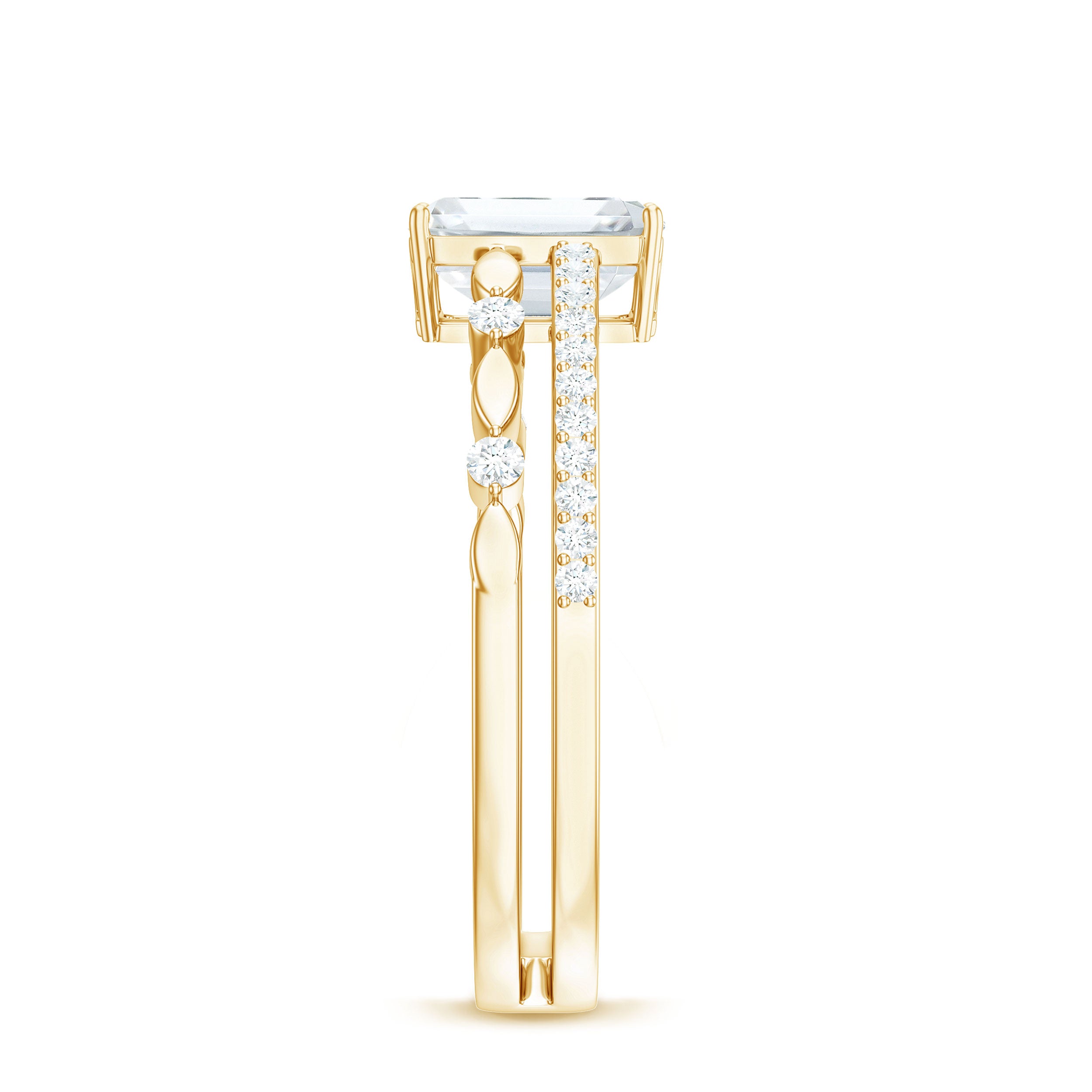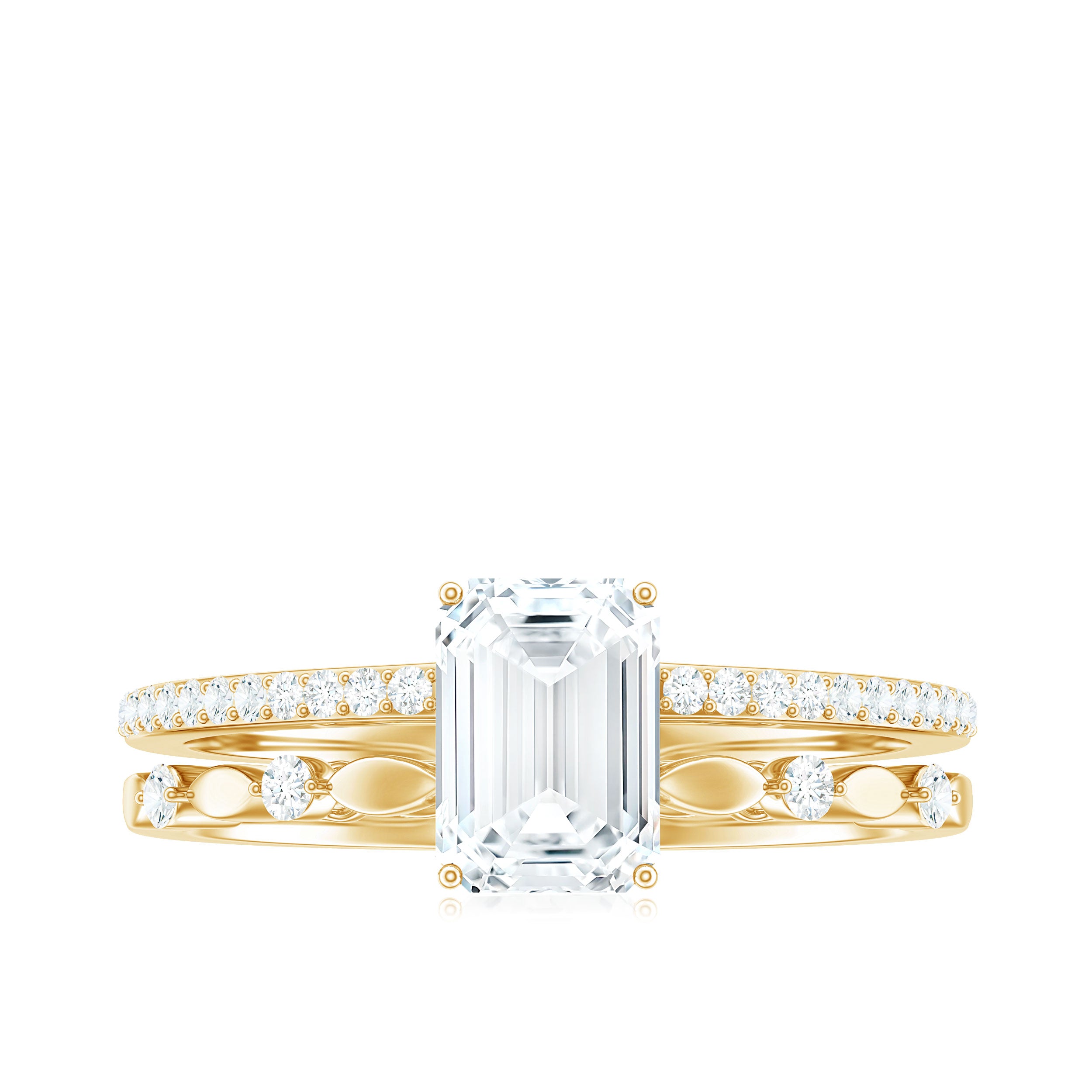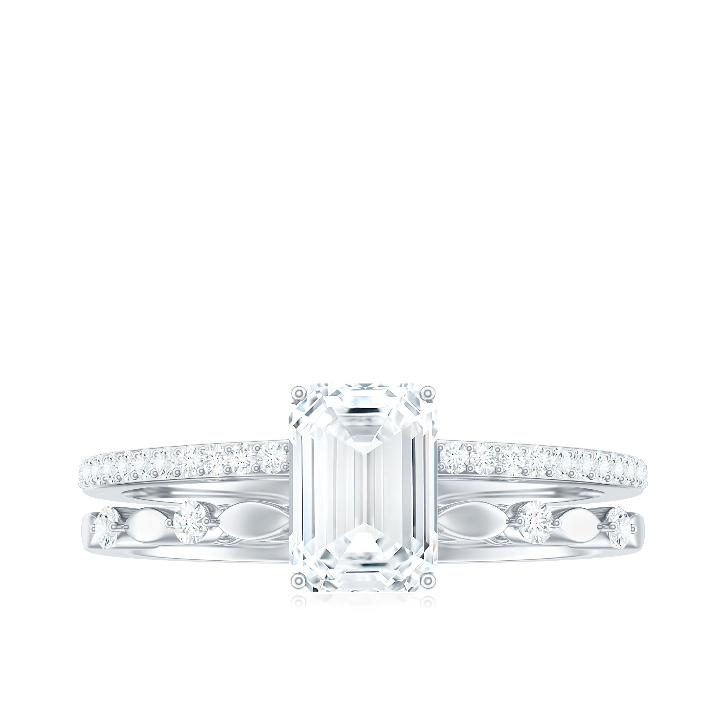 6X8 mm Emerald Cut Moissanite Solitaire Engagement Double Band Ring