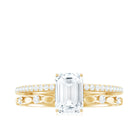 Timeless elegance that will last a lifetime, this Emerald Cut Engagement Ring is a stunning symbol of love and commitment. Featuring with 6X8 MM emerald cut moissanite set at the center, securely held in prong setting that allows light to reflect from every angle, creating a beautiful sparkle that is hard to miss. Enhancing its allure, the double band is embellished with sparkling round moissanite stones that harmoniously enhance the central gem. This Double Band Engagement Ring showcases an elegant design, providing depth, style, and a contemporary interpretation of a classic appearance. This distinctive feature symbolizes the union of two lives merging into one, serving as a profound and significant emblem of your future together. The brilliance of the side stones enhances the center gem, making the entire Moissanite Engagement Ring shine with elegance and beauty. Every element is handcrafted with care, bringing out the best in each stone and giving the ring a high-end, refined finish. Perfect for proposals, anniversaries, or special celebrations, this Designer Moissanite Ring is more than just jewelry, it’s a lasting expression of love, promise, and devotion. Whether worn daily or on special occasions, it is a piece that will always make a statement.