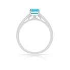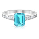 Dazzle around in this Solitaire Engagement Ring studded with a 6X8 MM Emerald Cut Solitaire of Swiss Blue Topaz, birthstone of the month December accentuated by Diamond side stone which will enhance your ensemble.