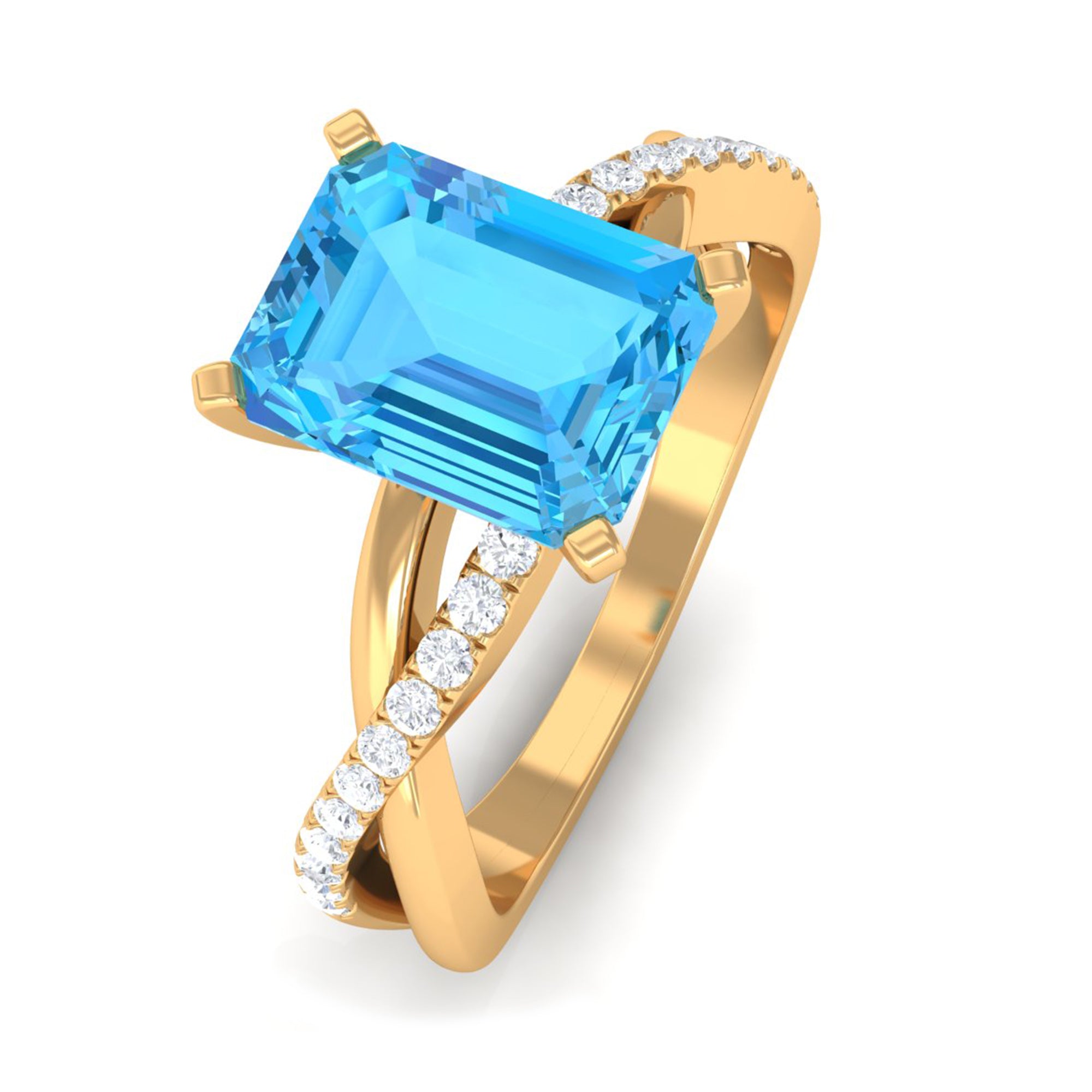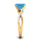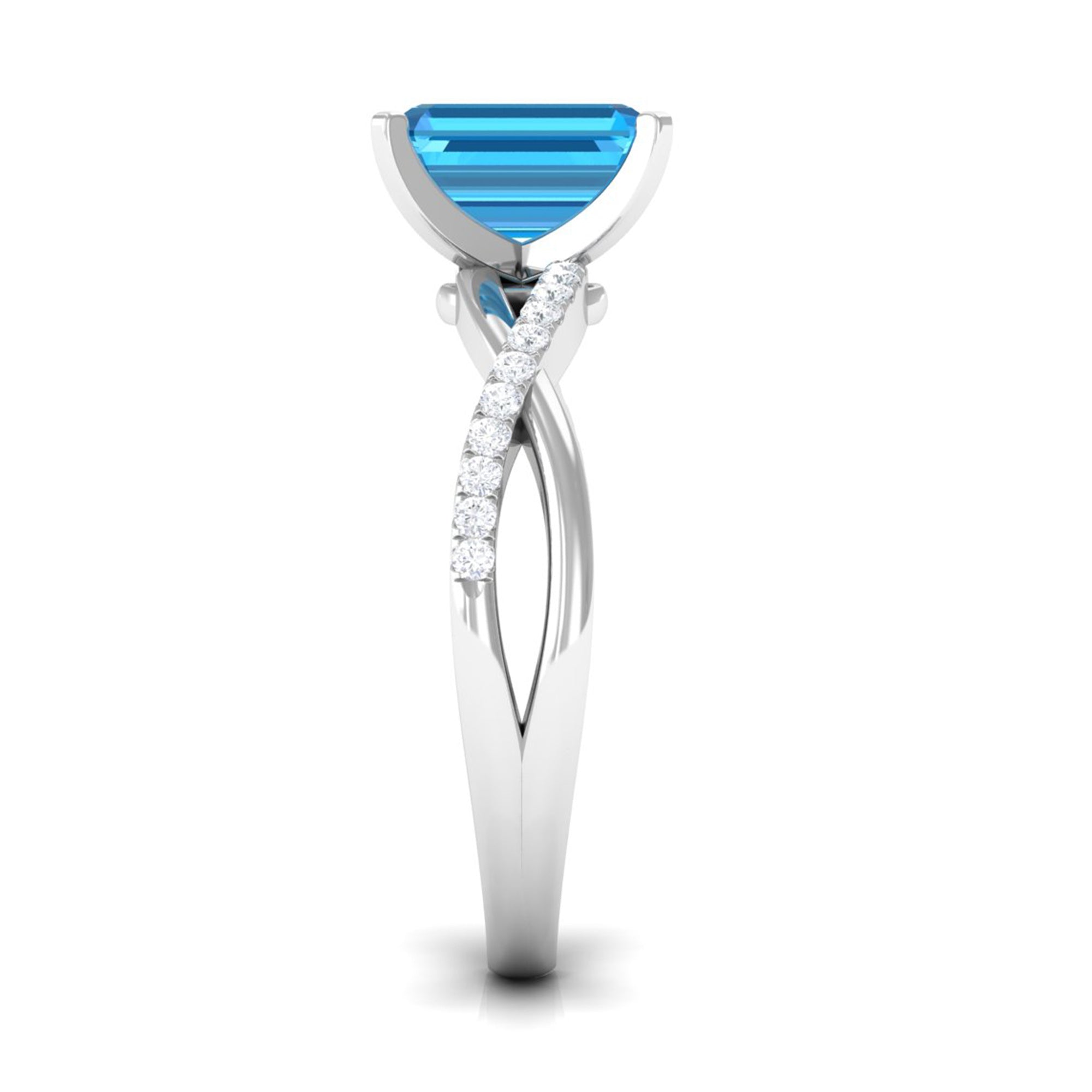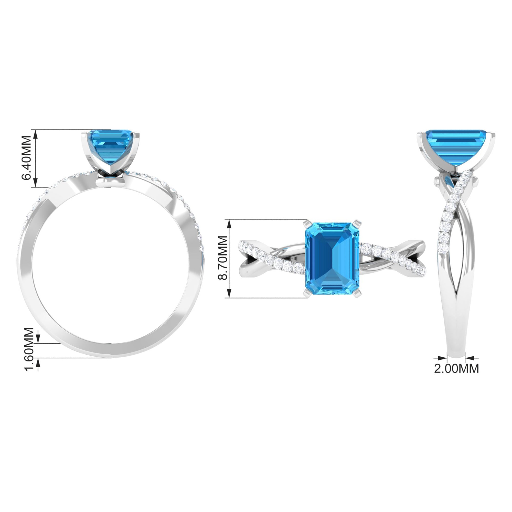 6X8 MM Emerald Cut Swiss Blue Topaz Solitaire with Diamond Engagement Ring