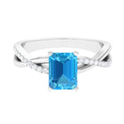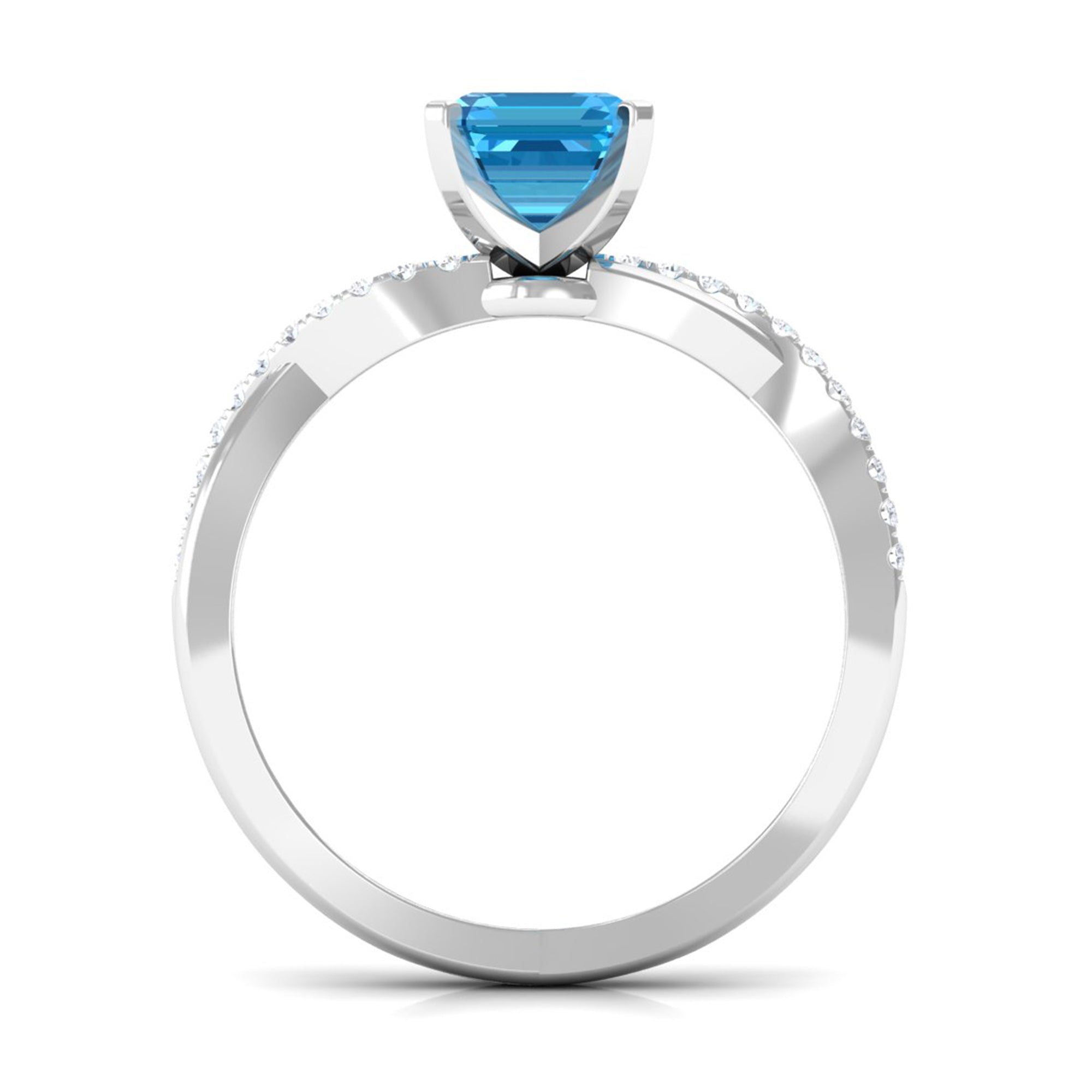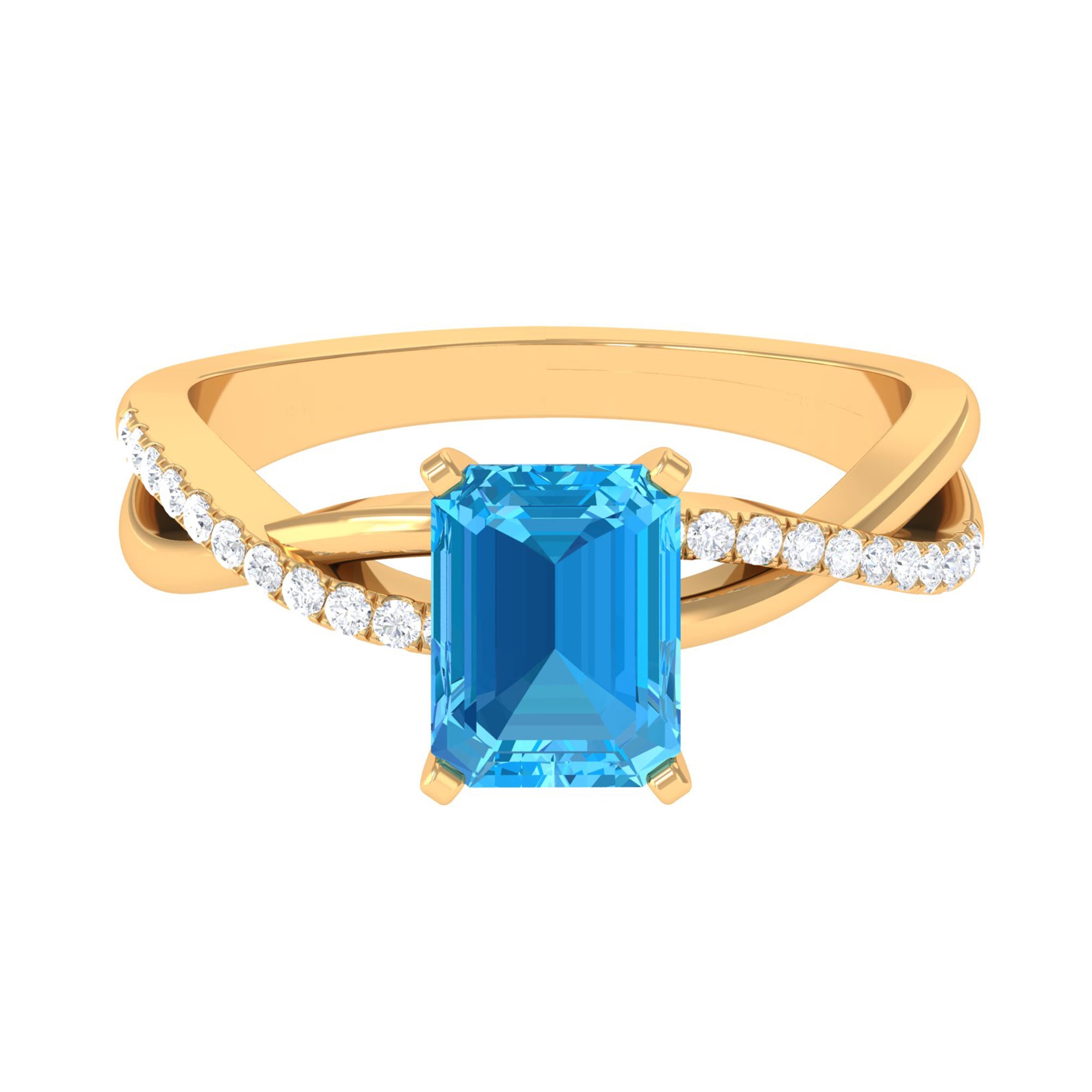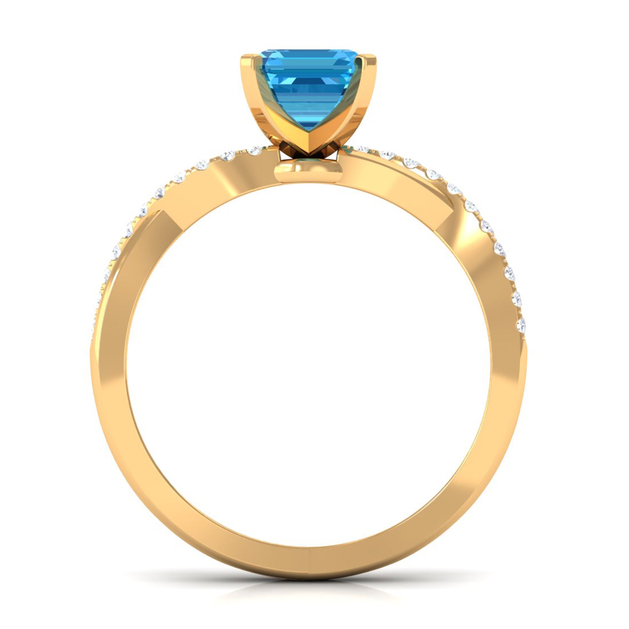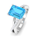 6X8 MM Emerald Cut Swiss Blue Topaz Solitaire with Diamond Engagement Ring