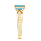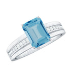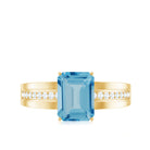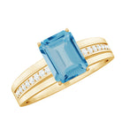 6X8 MM Emerald Cut Swiss Blue Topaz Solitaire with Diamond Two Tone Ring