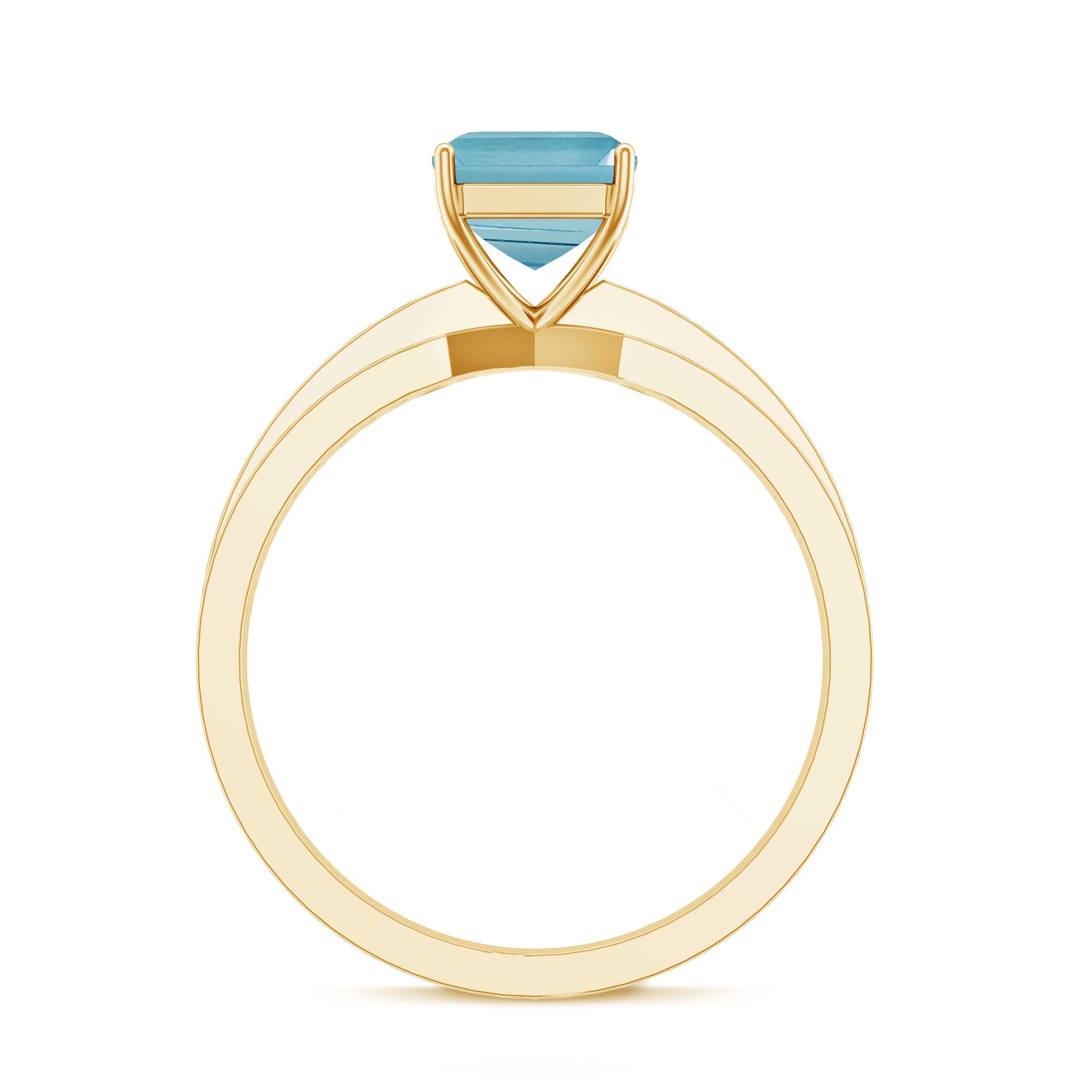 6X8 MM Emerald Cut Swiss Blue Topaz Solitaire with Diamond Two Tone Ring
