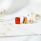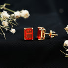 6X8 MM Octagon Cut Fire Opal Solitaire Stud Earrings for Women