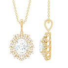 6X8 MM Oval Lab Grown Diamond Vintage Necklace With Double Halo