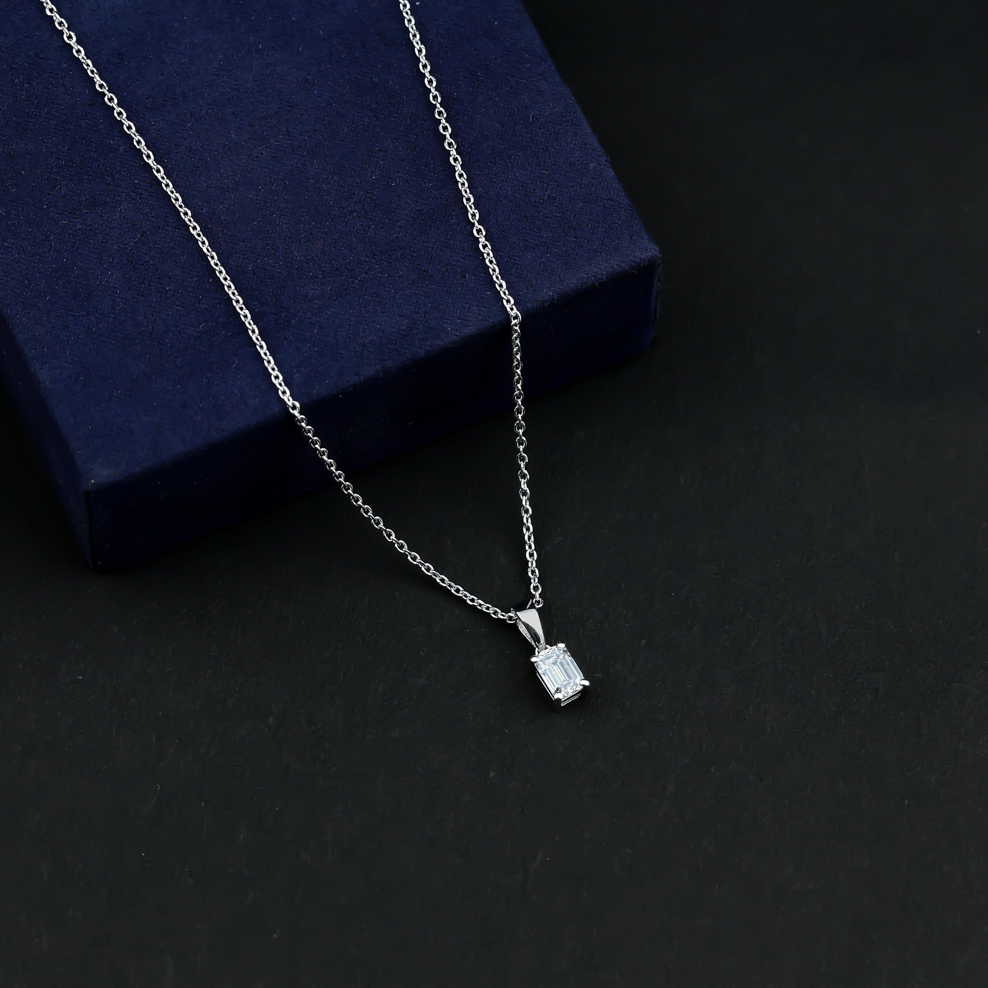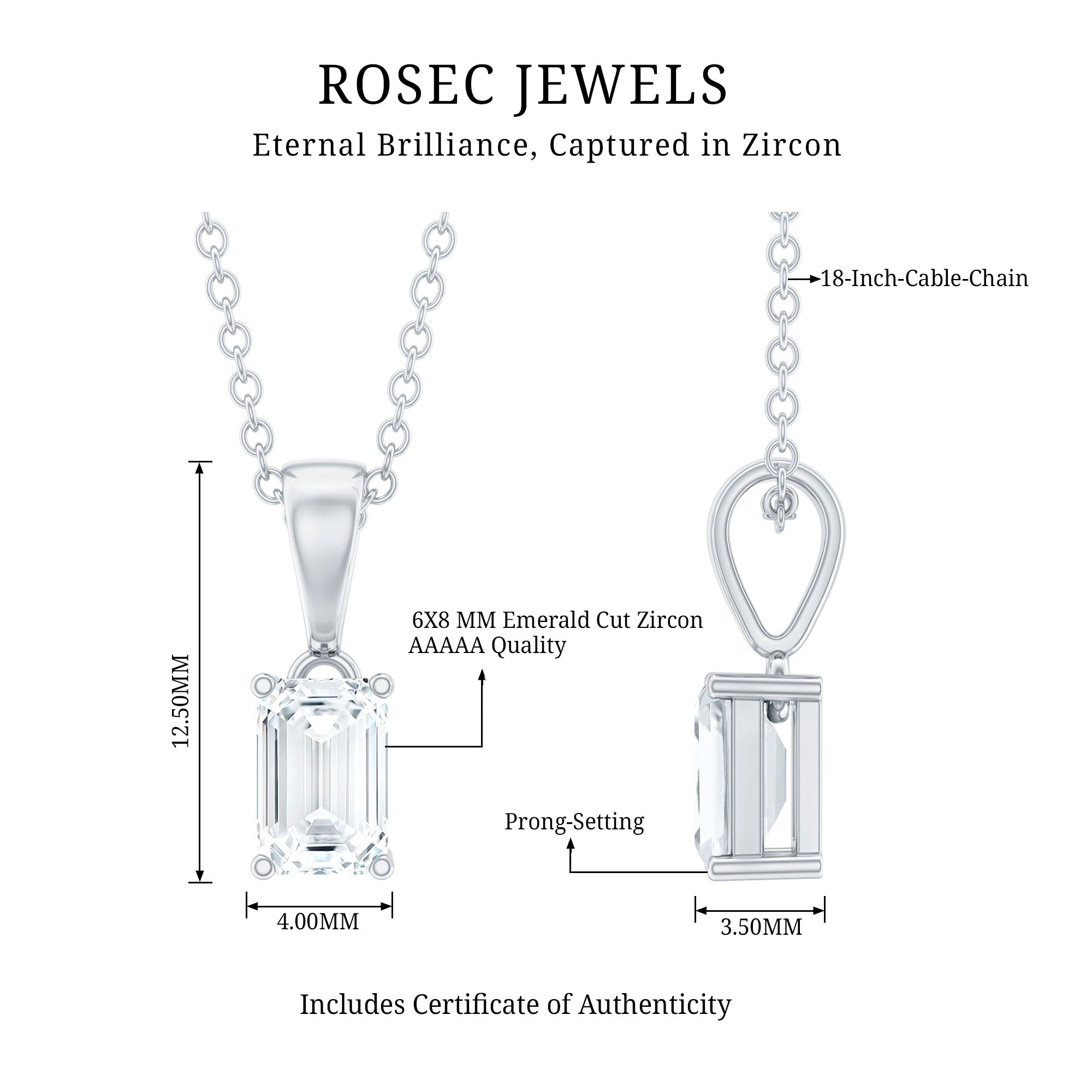 6X8mm Emerald Cut Cubic Zirconia Solitaire Necklace With Silver Chain