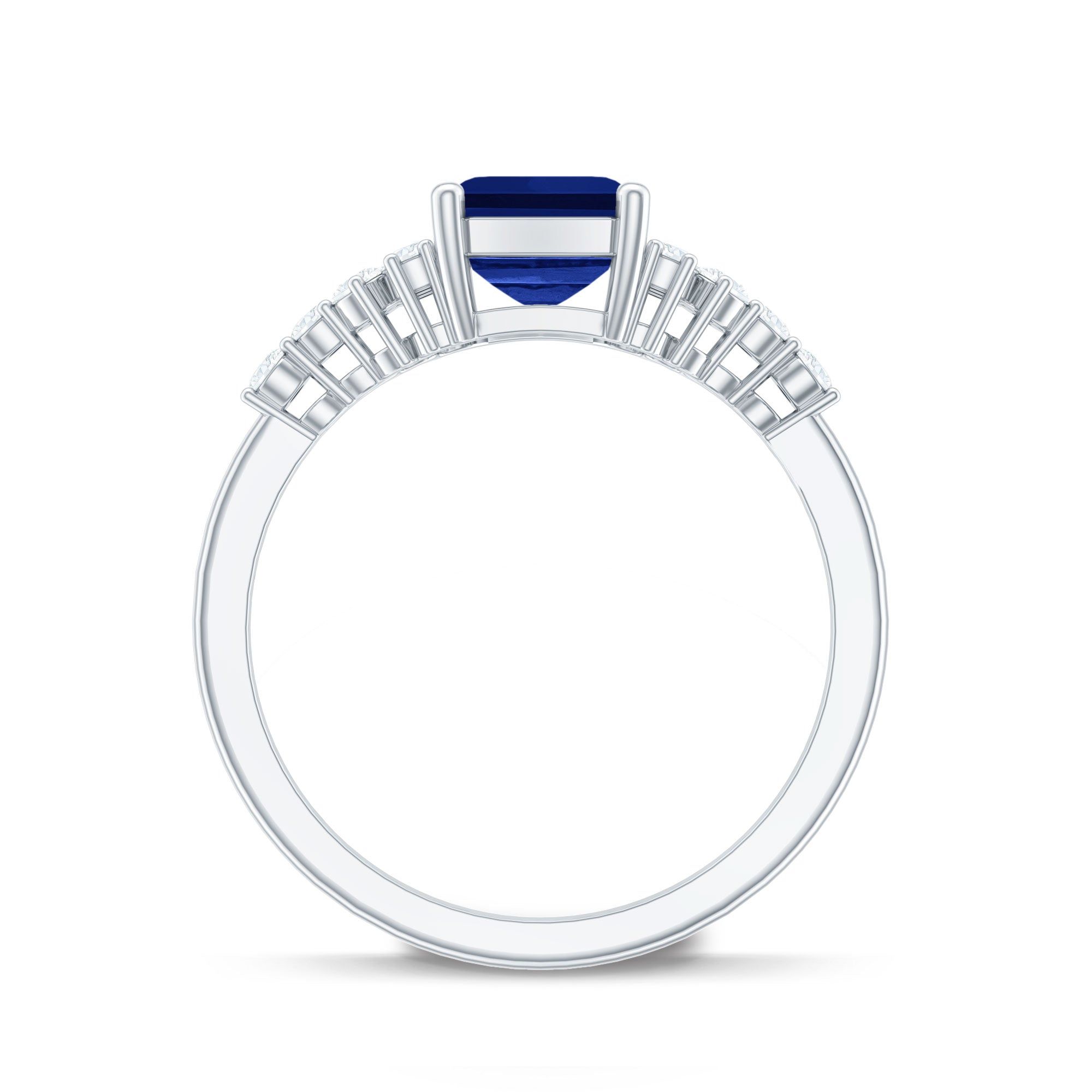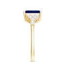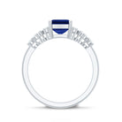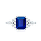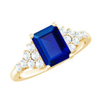 Experience the enchantment of nature captured in the Lab Grown Blue Sapphire Ring, which captivates with its allure, making it an exceptional piece of jewelry that every bride would cherish. This ring features a 6X8 mm emerald cut Lab Created Blue Sapphire set at the center as solitaire in a Prong Setting, with tiny round shape diamond accents in a cluster style. This Emerald Cut Engagement Ring is renowned for its otherworldly beauty that draws the eye. Always in vogue, this Cluster Engagement Ring serves as a tangible representation of your distinctive love story. This Lab Grown Sapphire Engagement Ring radiates a brilliant sparkle, making it an ideal selection for those wishing to convey a simple yet unforgettable statement. Whether as a symbol of commitment or as a Pre Wedding Ring, it embodies the beautiful evolution of your relationship, a sincere promise of a future filled with shared aspirations and lasting love.