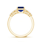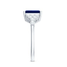 6X8mm Emerald Cut Lab Created Blue Sapphire Vintage Inspired Engagement Ring with Diamond