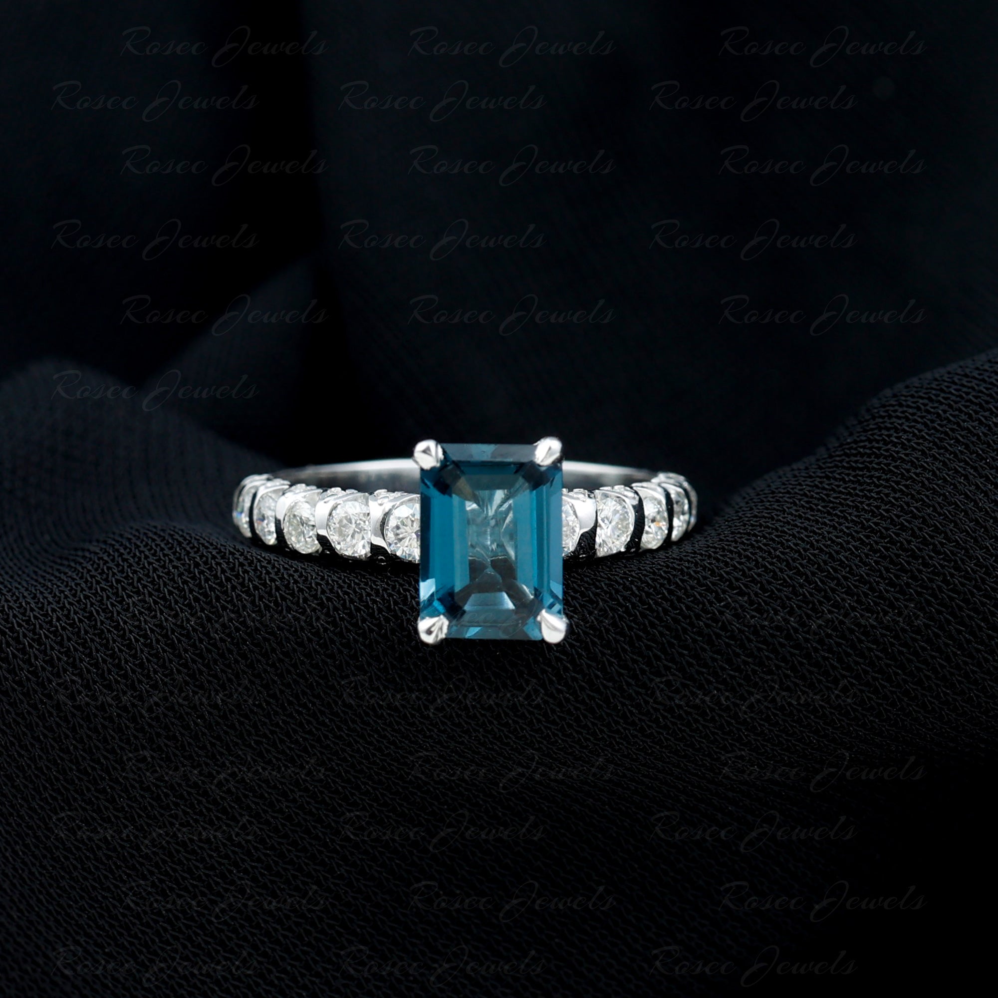 Make your beloved feel cherished with our exquisite London Blue Topaz Engagement Ring on her special day. Its elegant yet simple design beautifully accentuates the central gemstone. This timeless Emerald Cut Engagement Ring features AAA quality London Blue Topaz, ensuring the fire and brilliance that represent love and commitment. At its center lies a 6X8 MM emerald cut London Blue Topaz, enhanced by round shape Diamond side stones. The radiant round cut side stones on the Engagement Ring with Side Stones create a captivating and striking look, reflecting your distinctive style and character. It effortlessly merges traditional beauty with a contemporary twist, providing an elegant appearance that exudes stunning brilliance. This Blue Topaz Solitaire Ring is offered in a range of sizes, guaranteeing a perfect fit that feels tailor-made just for you. Every aspect of this London Blue Topaz Ring for Women exemplifies precision, passion, and a hint of magic that only true craftsmanship can achieve. Let your fingers narrate your story and allow your love to shine with a brilliance as exceptional as your connection.
