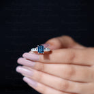 6X8mm Emerald Cut London Blue Topaz Engagement Ring with Diamond Side Stones