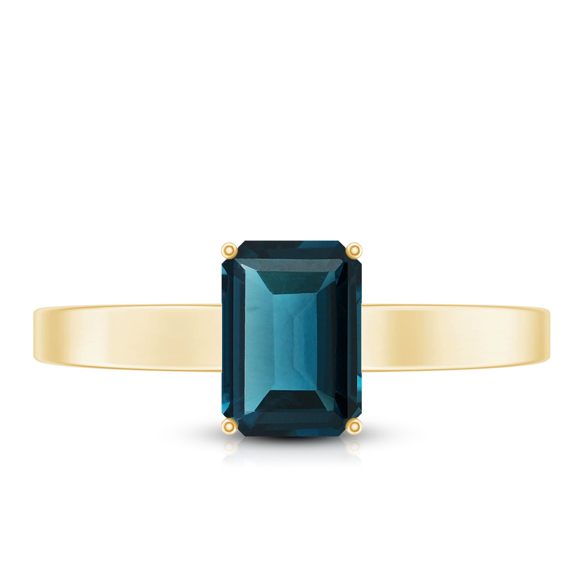 6X8mm Emerald Cut London Blue Topaz Solitaire Ring with Certificate
