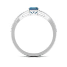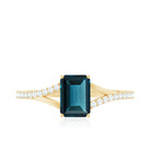 6X8mm Emerald Cut London Blue Topaz Split Shank Engagement Ring with Diamond