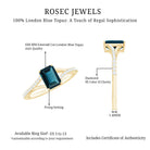 The ideal method to infuse a hint of elegance into any ensemble, this Split Shank Engagement Ring showcases an 6X8 MM emerald cut London Blue Topaz at its center, secured in a prong setting. The split shank style is adorned with small round Diamonds. This Topaz Engagement Ring features AAA quality London blue topaz with HI-SI quality Diamonds, enhancing the rings brilliance. The band is designed with a split shank, which not only appears graceful on the finger but also directs attention to the central Blue Topaz. This design aspect contributes a subtle touch, giving the London Blue Topaz Ring a balanced and airy look. Meticulously crafted for longevity, this Emerald Cut Engagement Ring is perfect for those in search of a Emerald Cut Blue Topaz Ring that is both breathtaking and unique compared to traditional designs. It presents an exceptional blend of brilliance, texture, and meaning, without being overly extravagant. The designer ring comes in a sophisticated jewelry box and is available in US sizes from 3 to 13, ensuring an ideal fit is readily achievable.