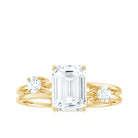 6x8mm Emerald Cut Moissanite Solitaire Double Band Engagement Ring