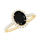 6X8MM Oval Black Onyx and Diamond Halo Engagement Ring