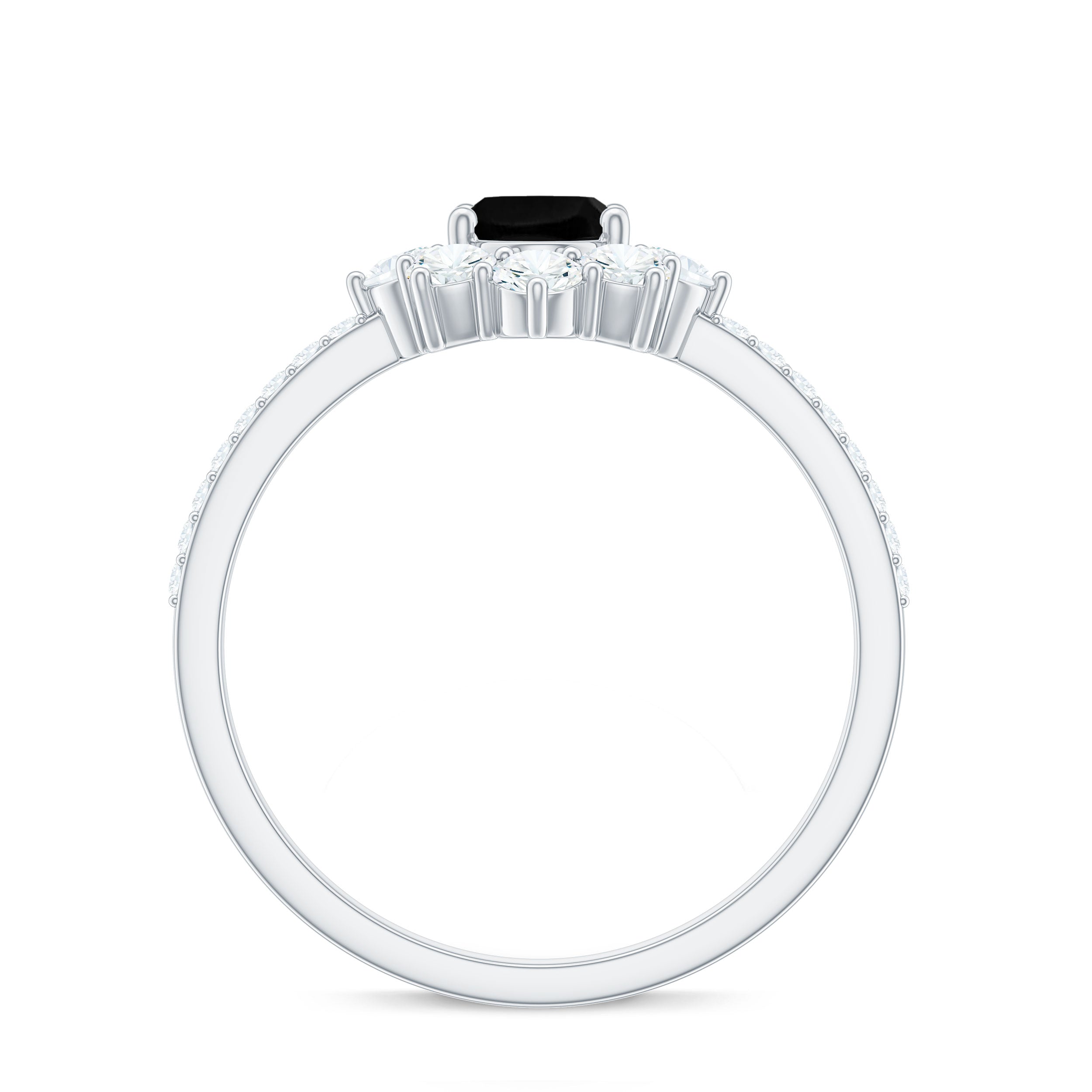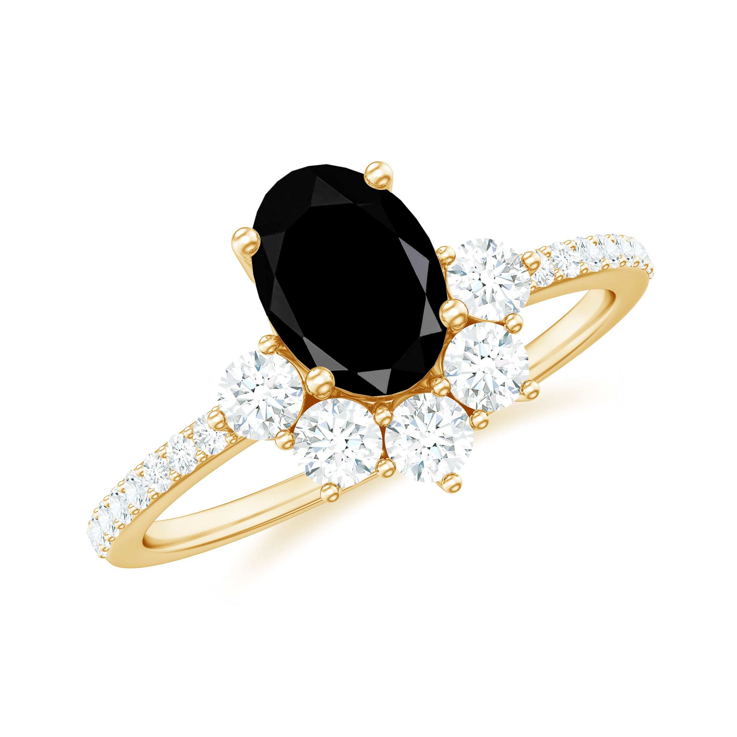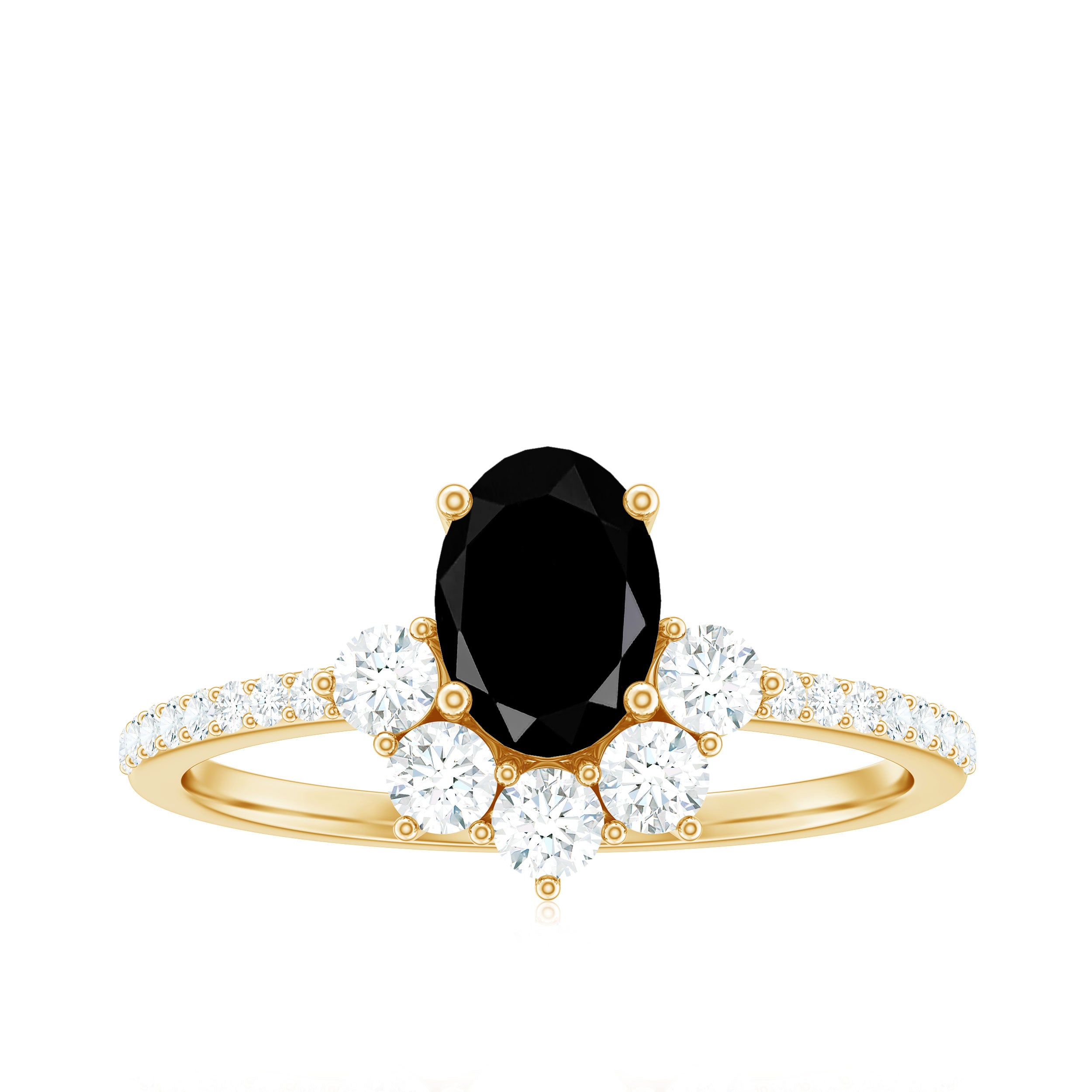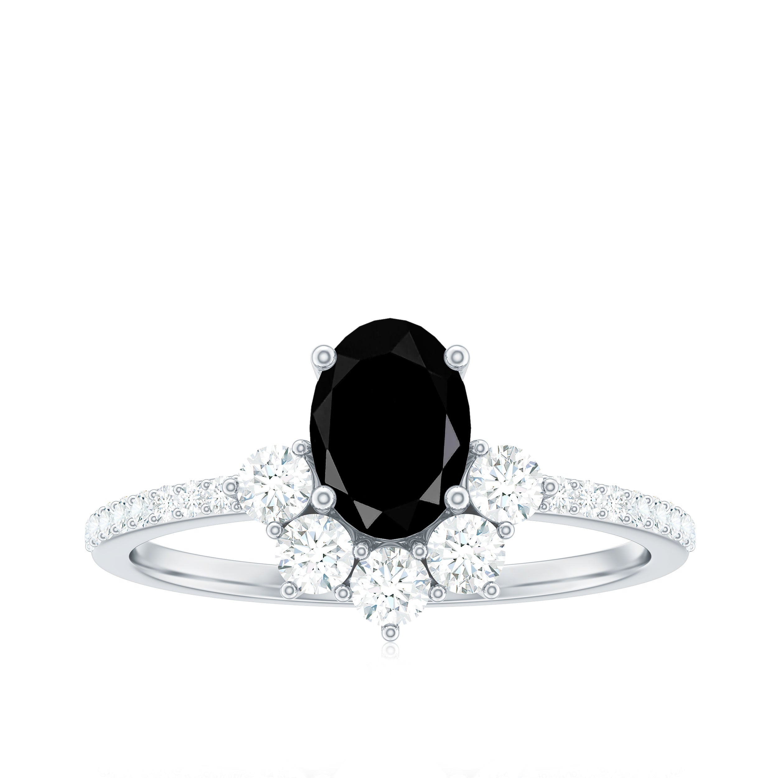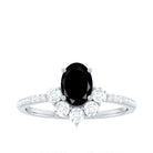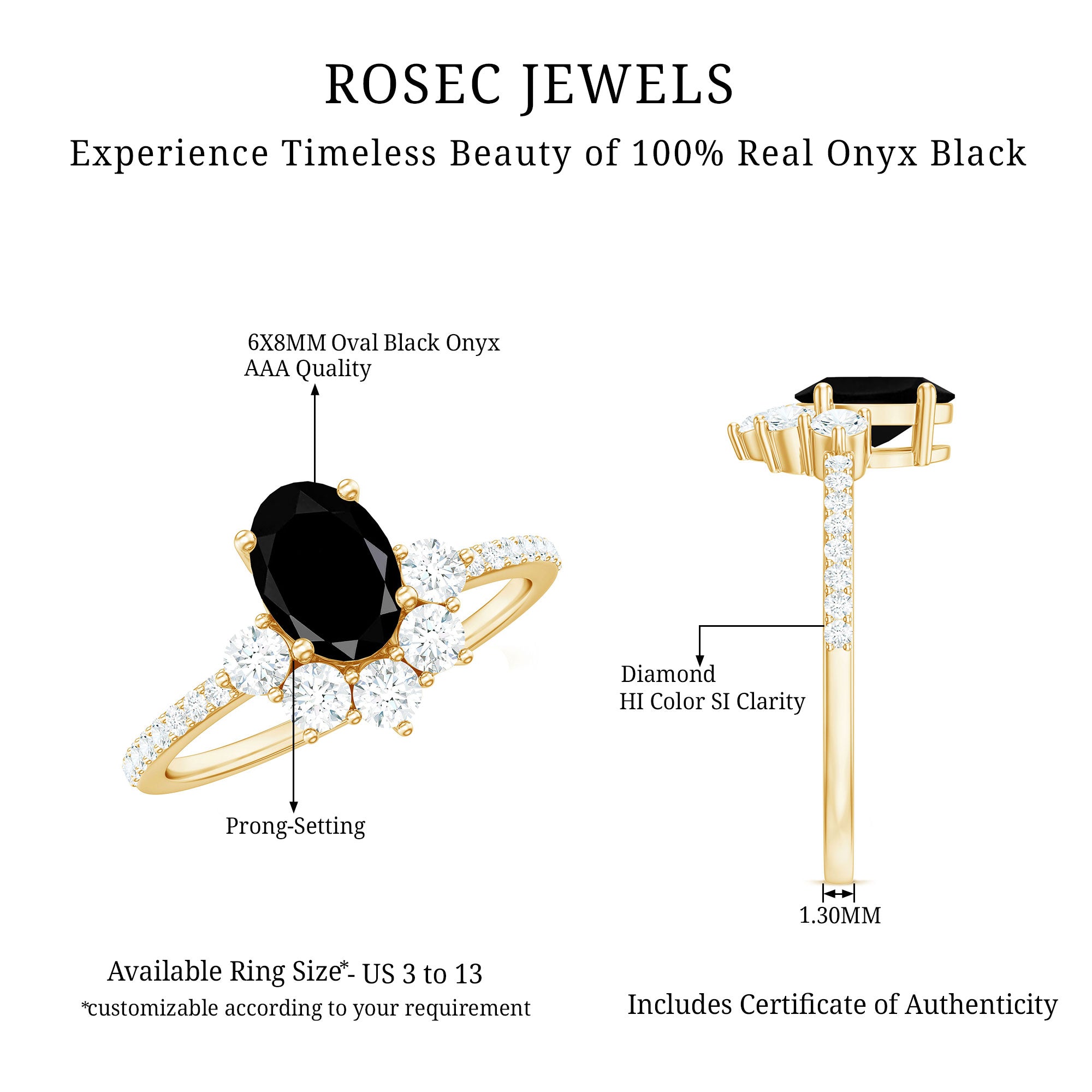 6X8mm Oval Cut Black Onyx Designer Engagement Ring with Diamond Half Halo