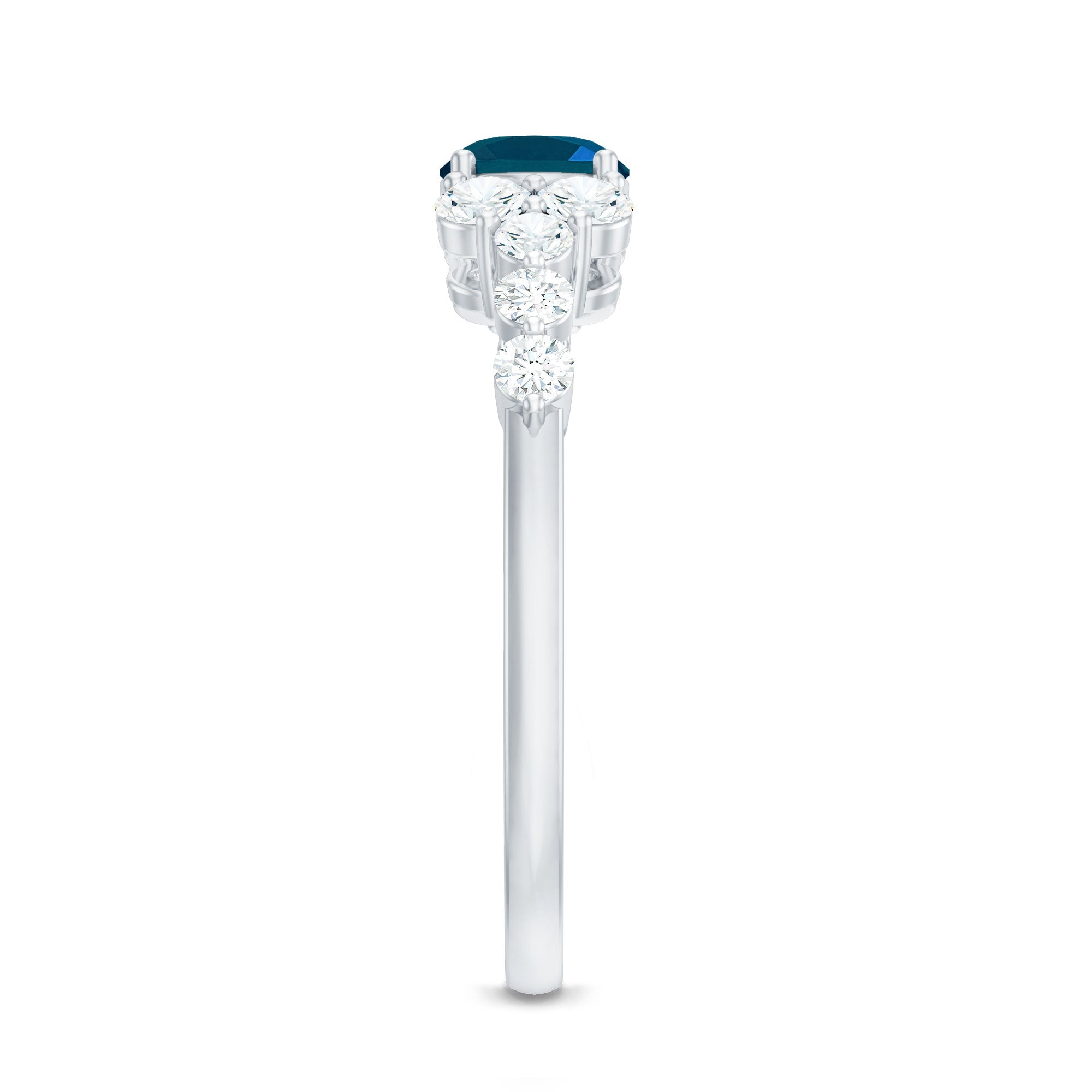 6X8mm Oval Cut London Blue Topaz Promise Ring with Diamond