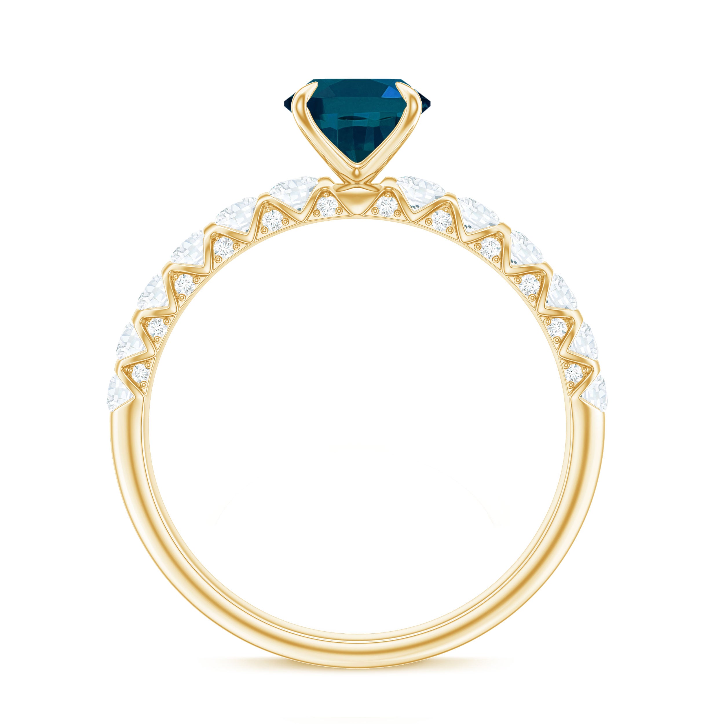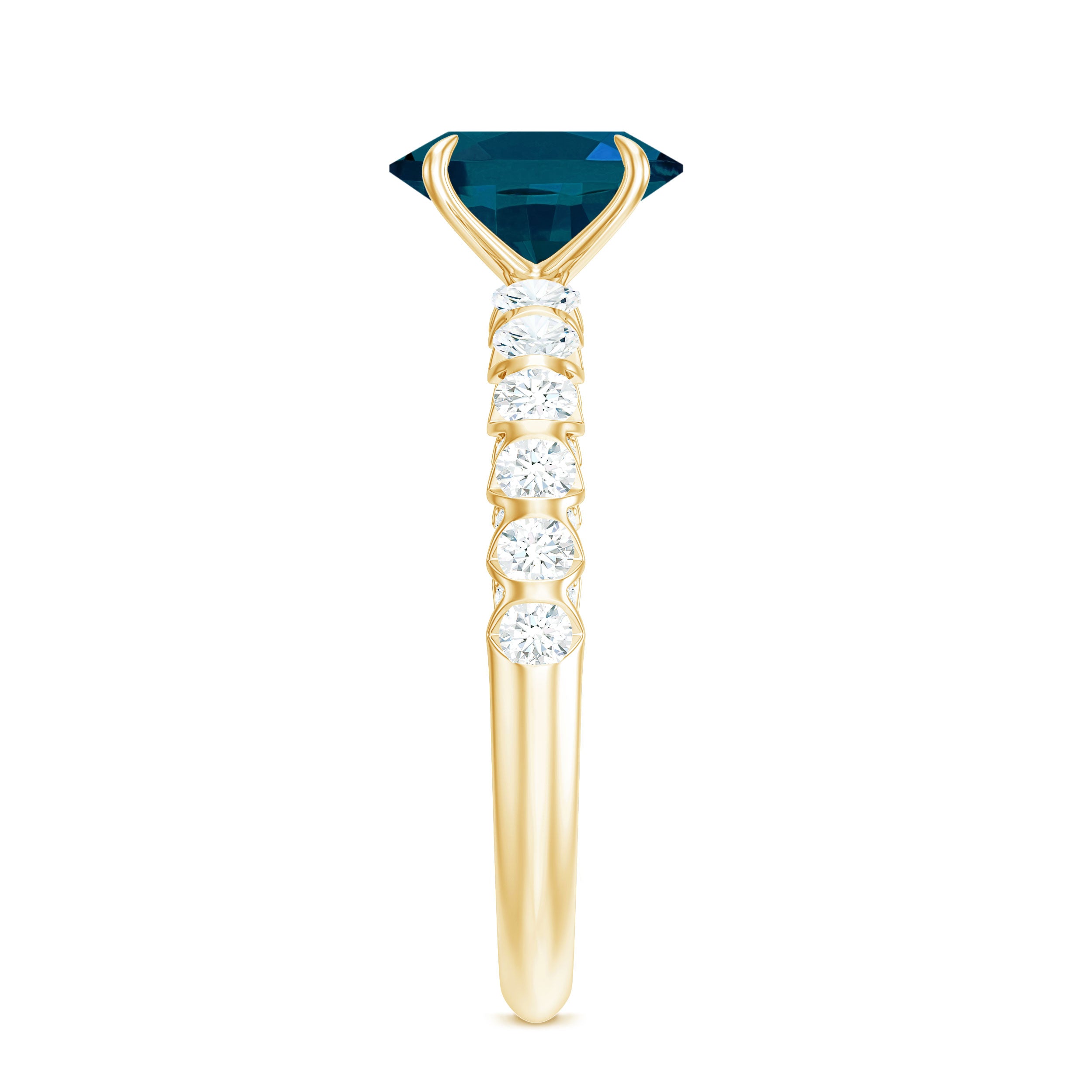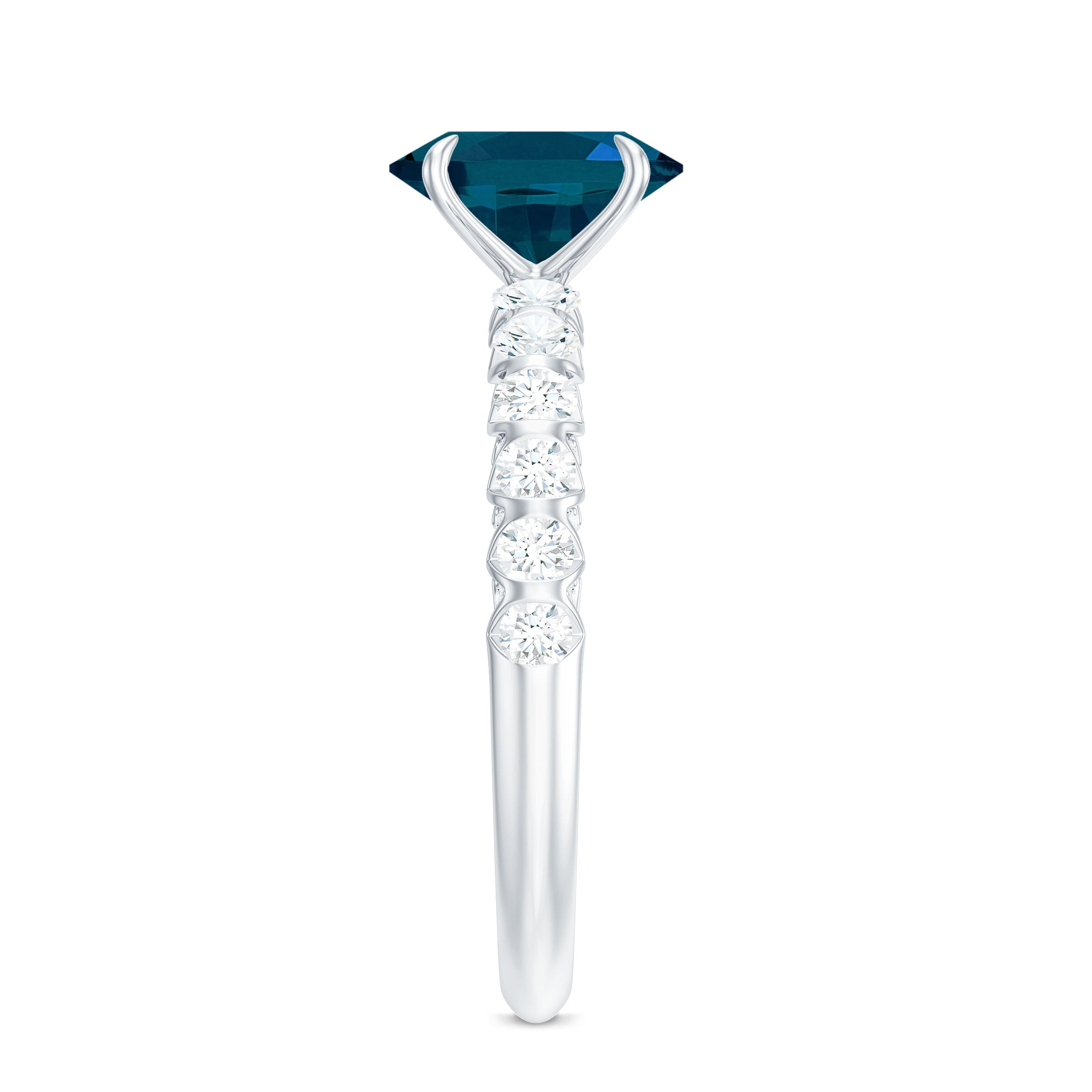 6X8mm Oval Cut London Blue Topaz Solitaire Engagement Ring with Diamond Side Stones