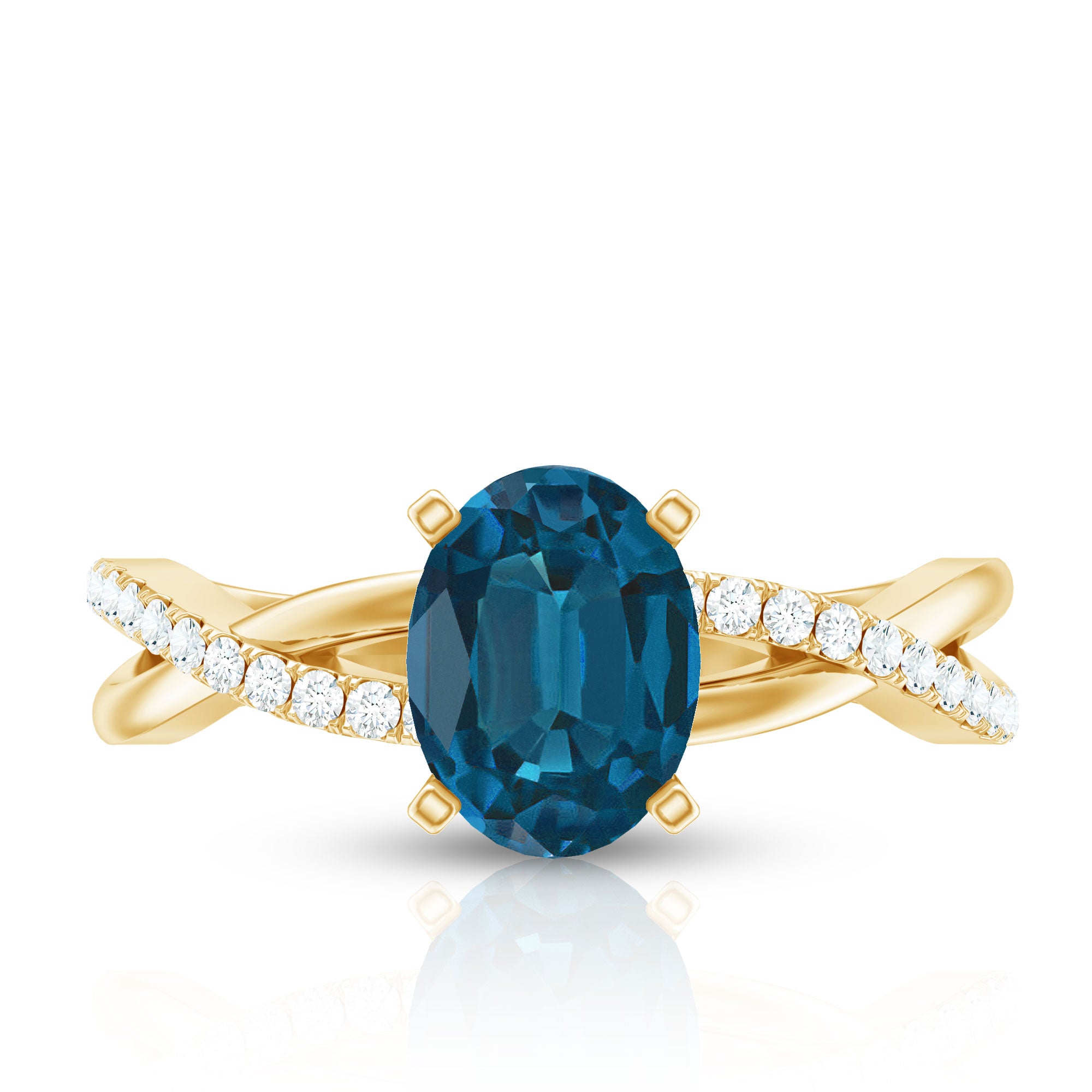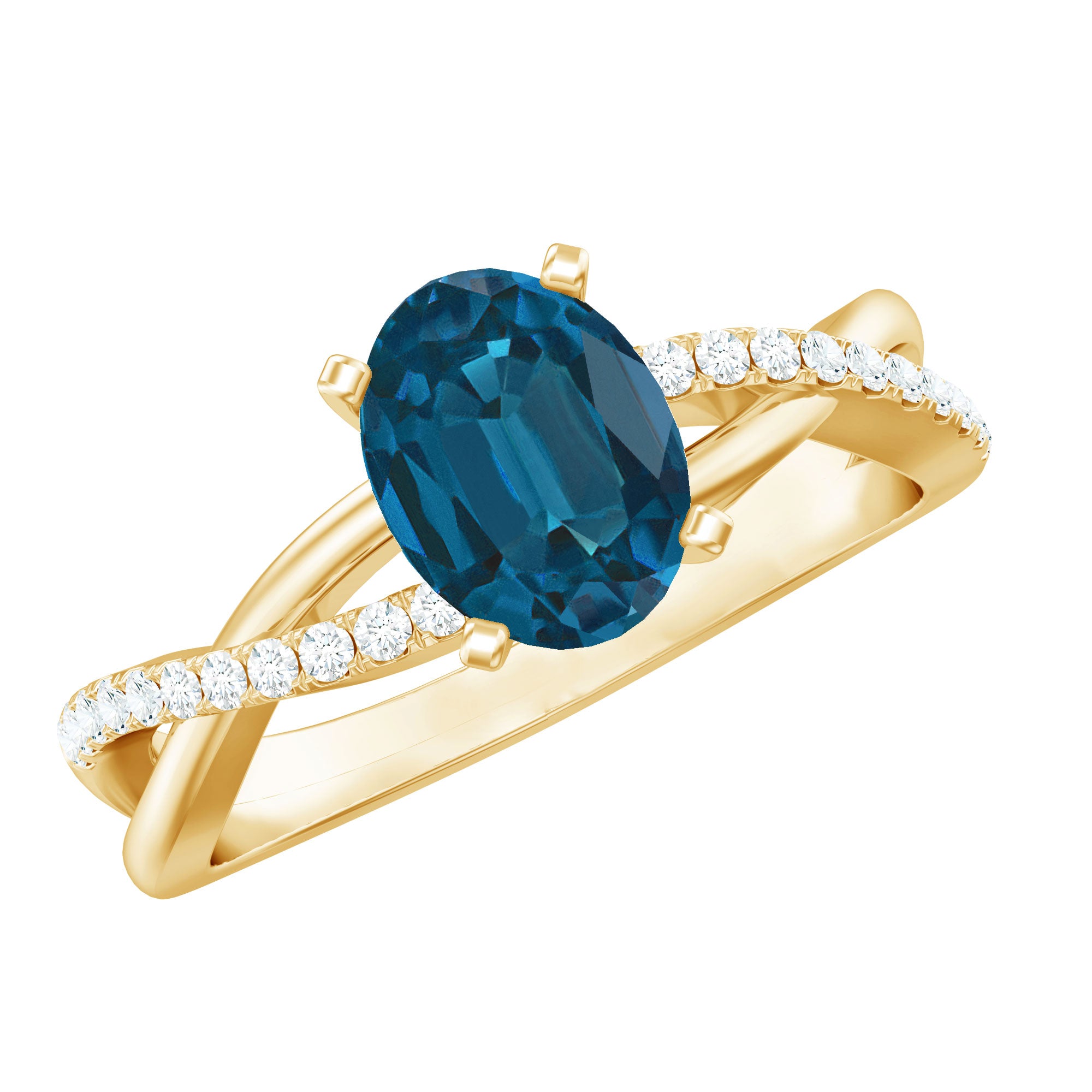 Celebrate the sparkle and love embodied in this exquisite London Blue Topaz Engagement Ring, crafted to leave a lasting impression. With its delicate and feminine design, this Infinity Ring serves as an ideal medium for conveying your emotions of love, joy, and gratitude in the most meaningful manner. At the heart of this sophisticated design lies a 6X8 MM oval cut London Blue Topaz, securely held in a prong setting. The band showcases a chic crossover design, adorned with glittering Diamond stones along the shank to enhance its brilliance. The London Blue Topaz stones are of AAA quality, celebrated for their radiant sparkle and superior quality. This Crossover Engagement Ring merges classic elegance with a contemporary flair, making it an excellent selection for someone who appreciates timeless beauty with a modern edge. Both simple and elegant, the design is suitable for daily wear or special events. Its gentle curves and understated shine render it a wonderful gift for anniversaries, significant milestones, or even as a promise ring to express your love and commitment. Meticulously crafted with intention, this Natural London Blue Topaz Ring for Her encapsulates the beauty of shared experiences and the vow of eternity. It transcends being merely a ring; it serves as a reminder of all that you hold dear about your relationship.