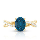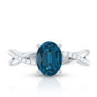 6X8mm Oval Cut London Blue Topaz Solitaire Engagement Ring with Diamond Spiral Shank