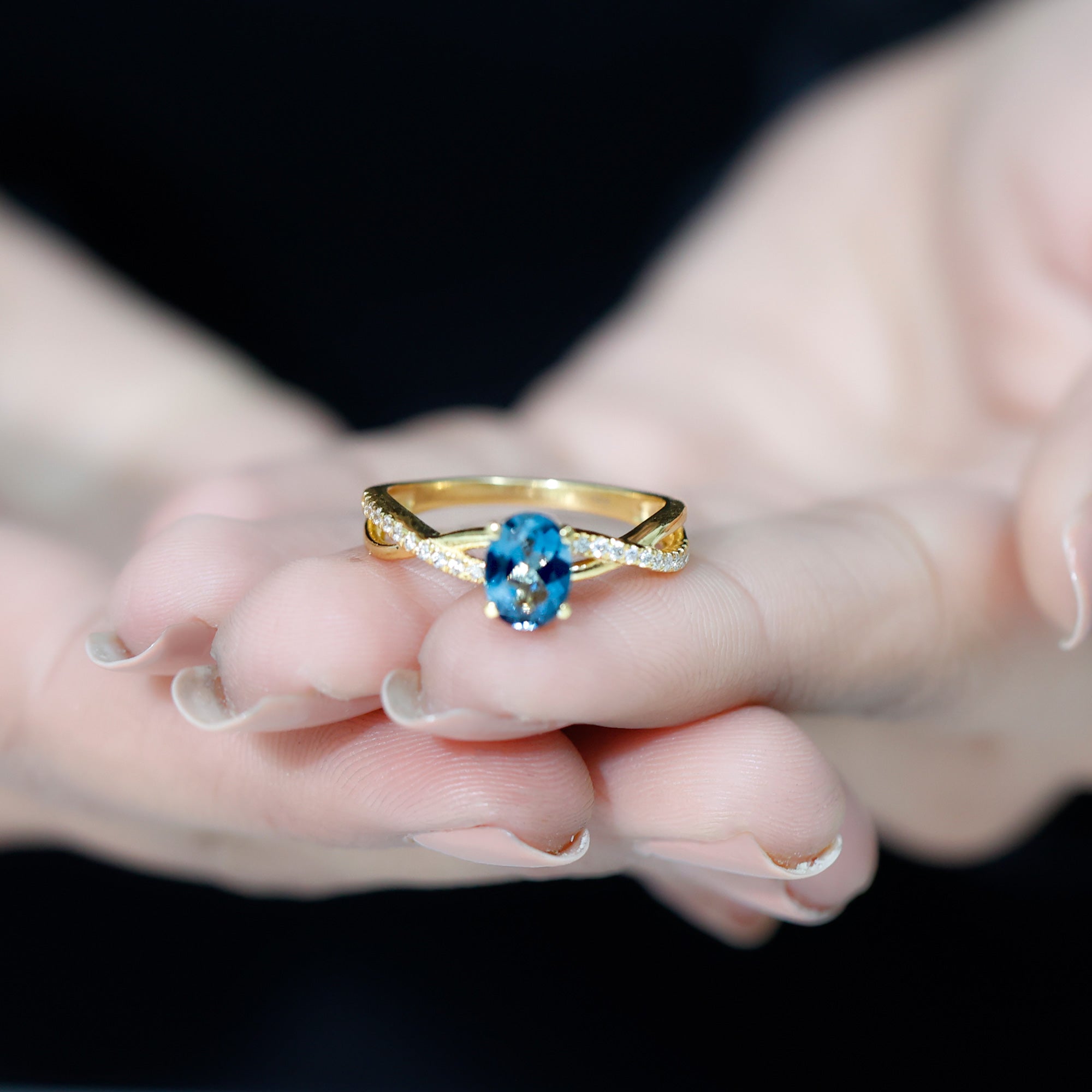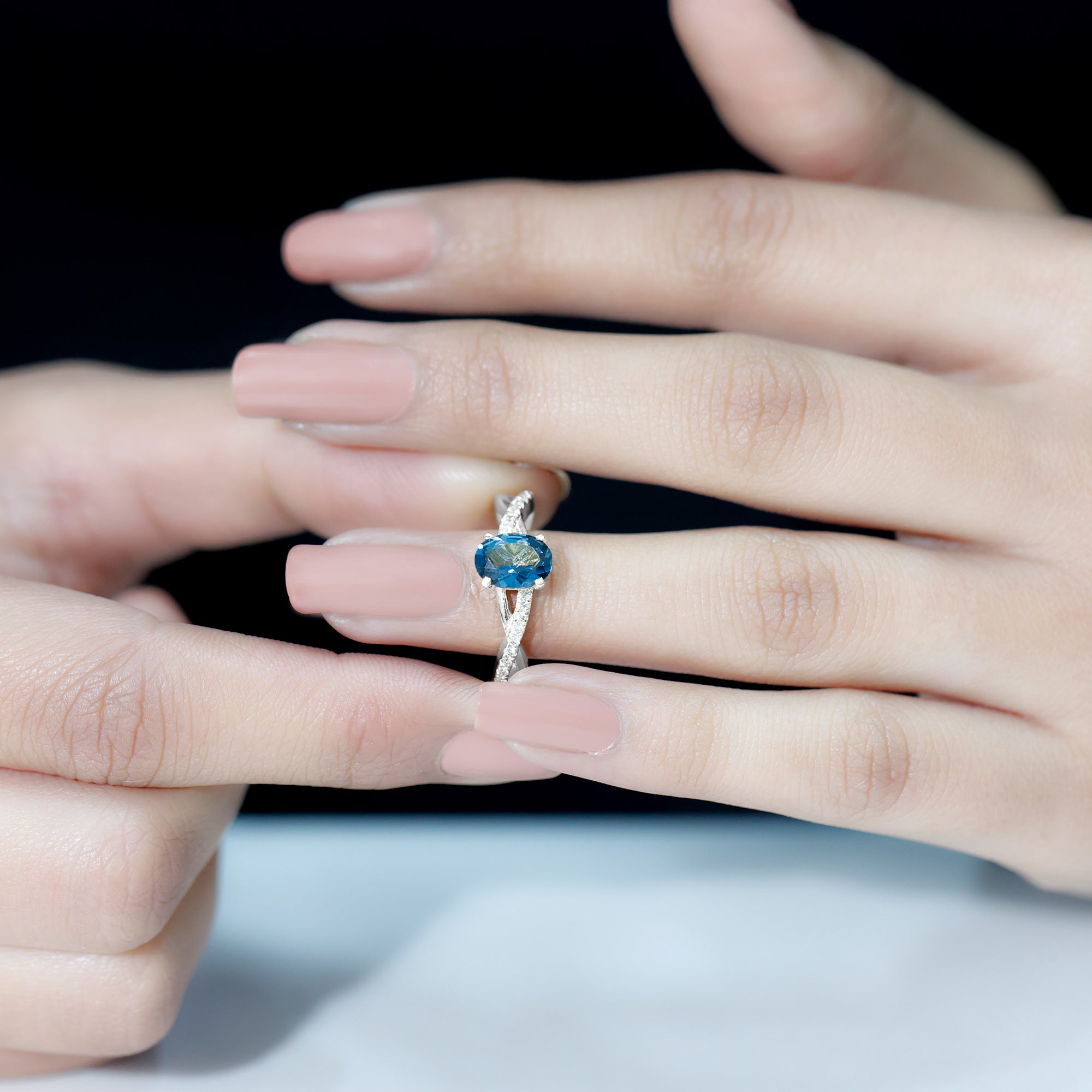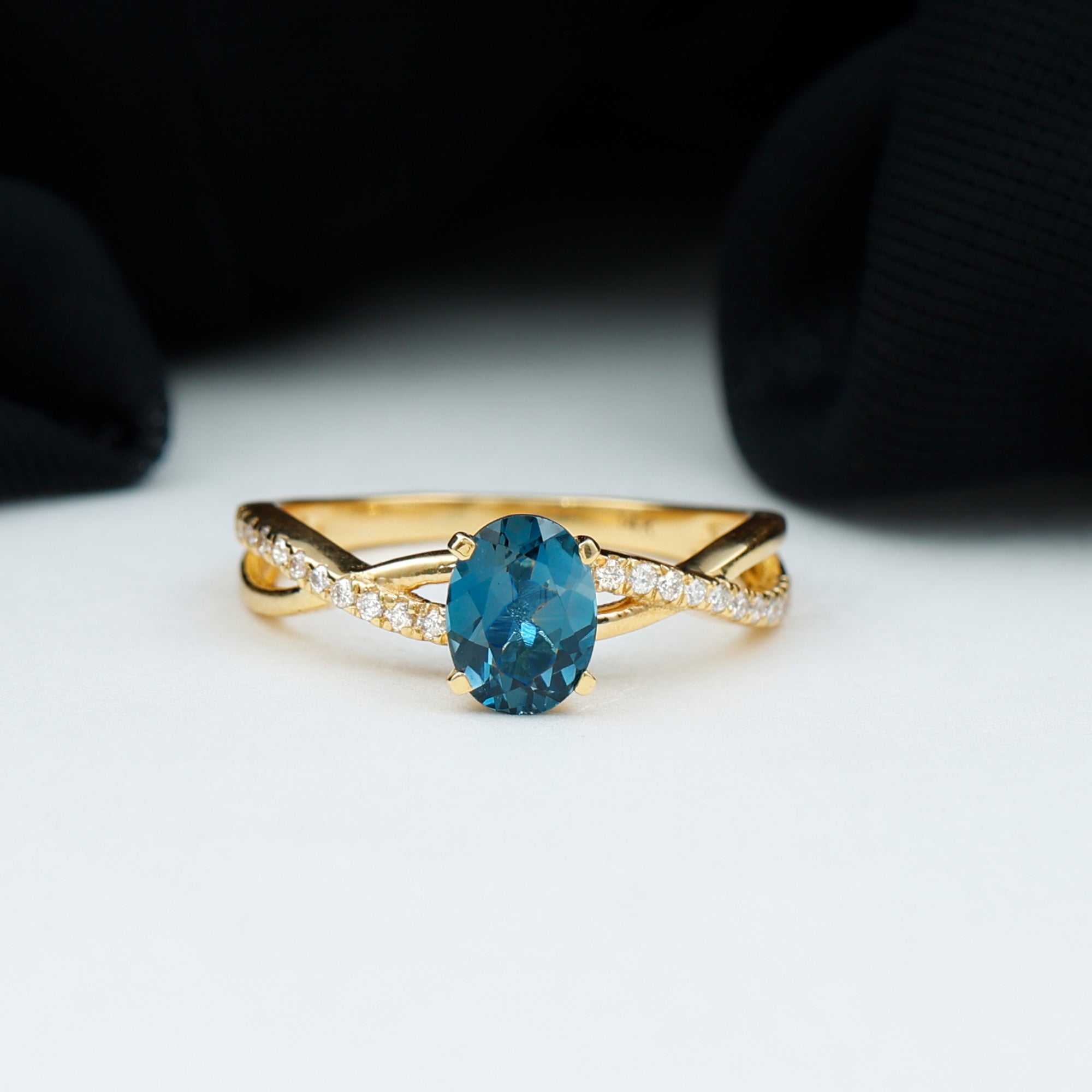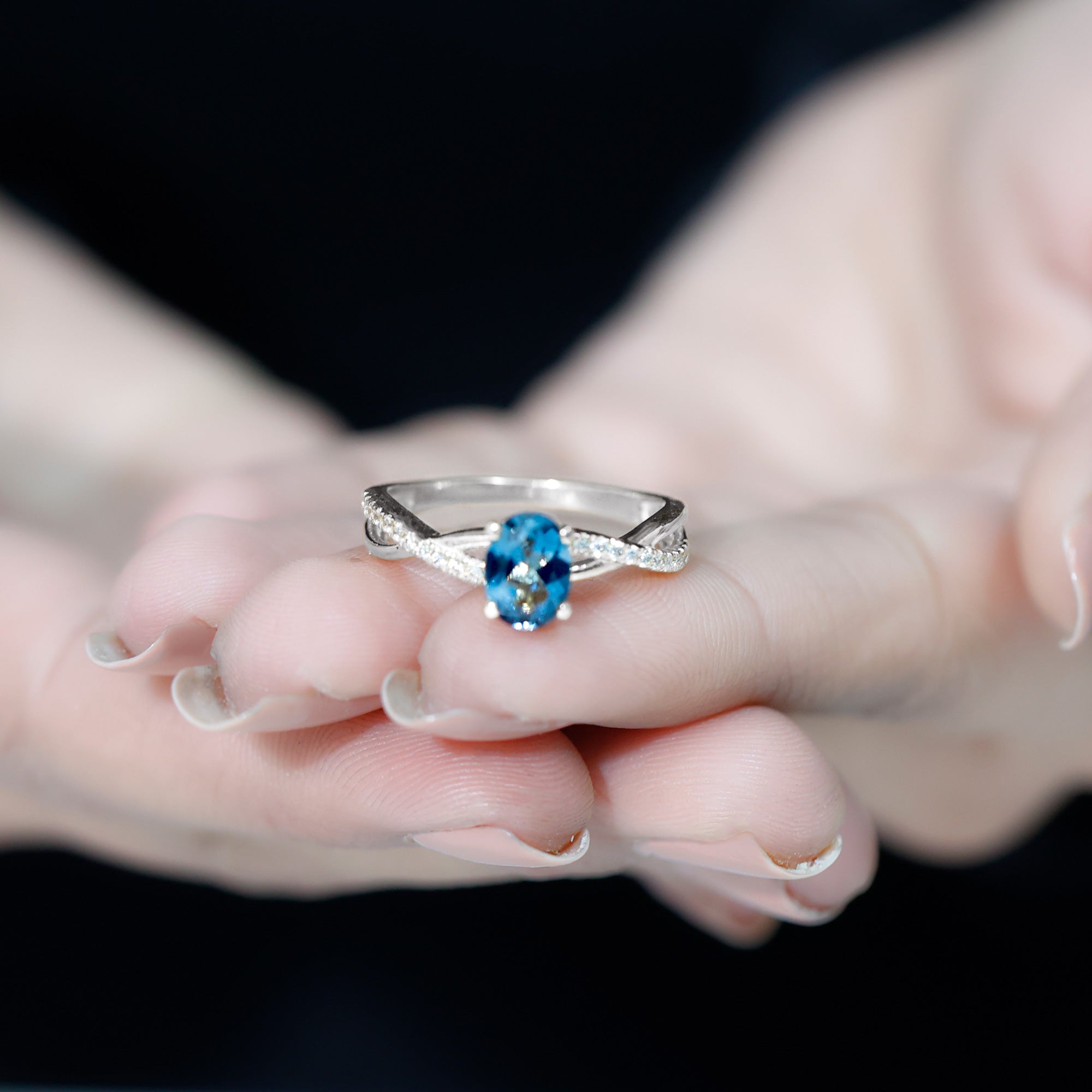 Celebrate the sparkle and love embodied in this exquisite London Blue Topaz Engagement Ring, crafted to leave a lasting impression. With its delicate and feminine design, this Infinity Ring serves as an ideal medium for conveying your emotions of love, joy, and gratitude in the most meaningful manner. At the heart of this sophisticated design lies a 6X8 MM oval cut London Blue Topaz, securely held in a prong setting. The band showcases a chic crossover design, adorned with glittering Diamond stones along the shank to enhance its brilliance. The London Blue Topaz stones are of AAA quality, celebrated for their radiant sparkle and superior quality. This Crossover Engagement Ring merges classic elegance with a contemporary flair, making it an excellent selection for someone who appreciates timeless beauty with a modern edge. Both simple and elegant, the design is suitable for daily wear or special events. Its gentle curves and understated shine render it a wonderful gift for anniversaries, significant milestones, or even as a promise ring to express your love and commitment. Meticulously crafted with intention, this Natural London Blue Topaz Ring for Her encapsulates the beauty of shared experiences and the vow of eternity. It transcends being merely a ring; it serves as a reminder of all that you hold dear about your relationship.