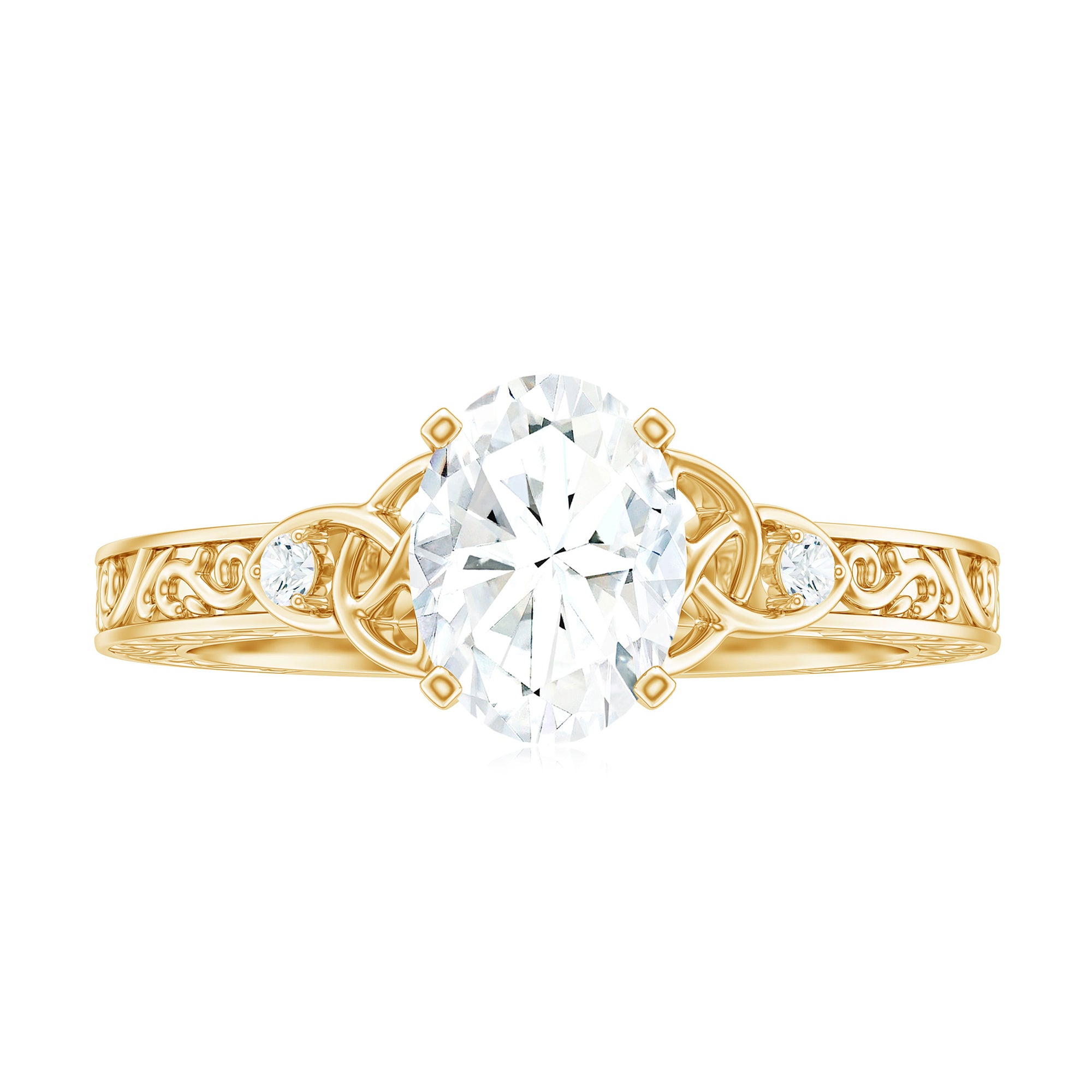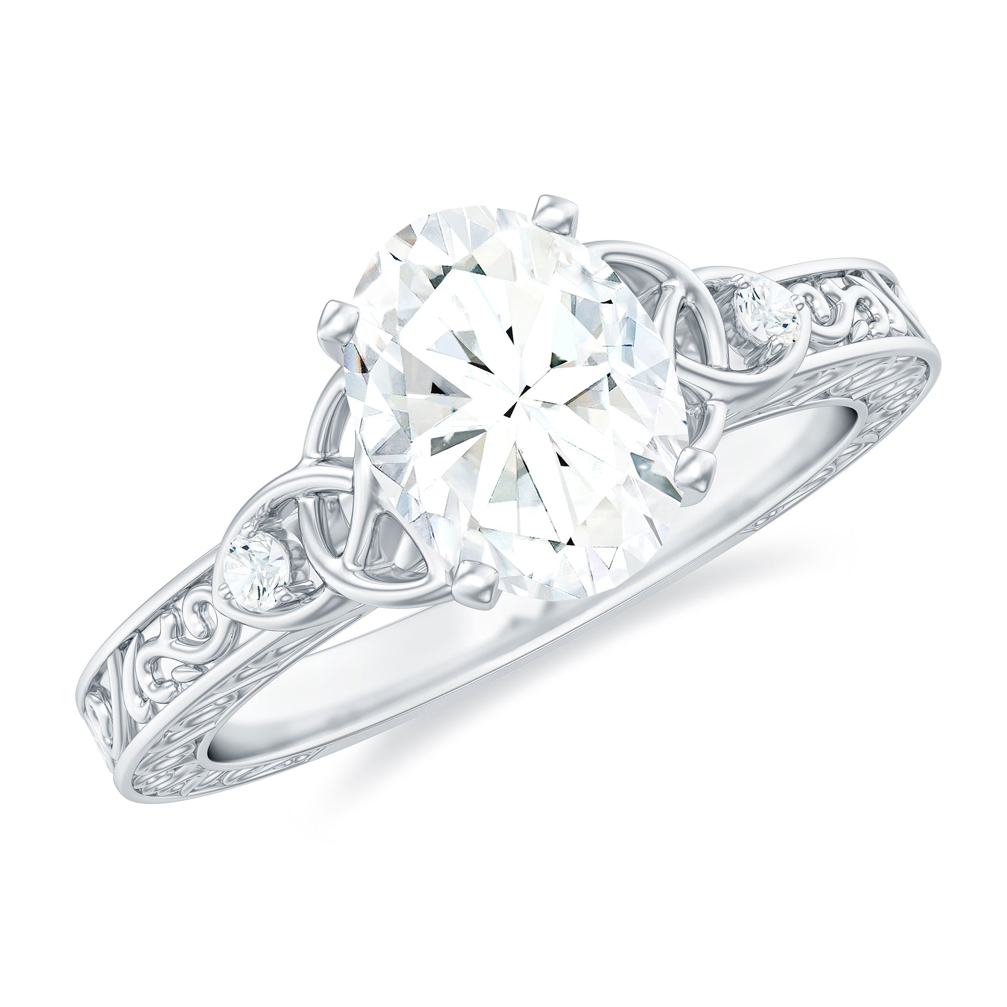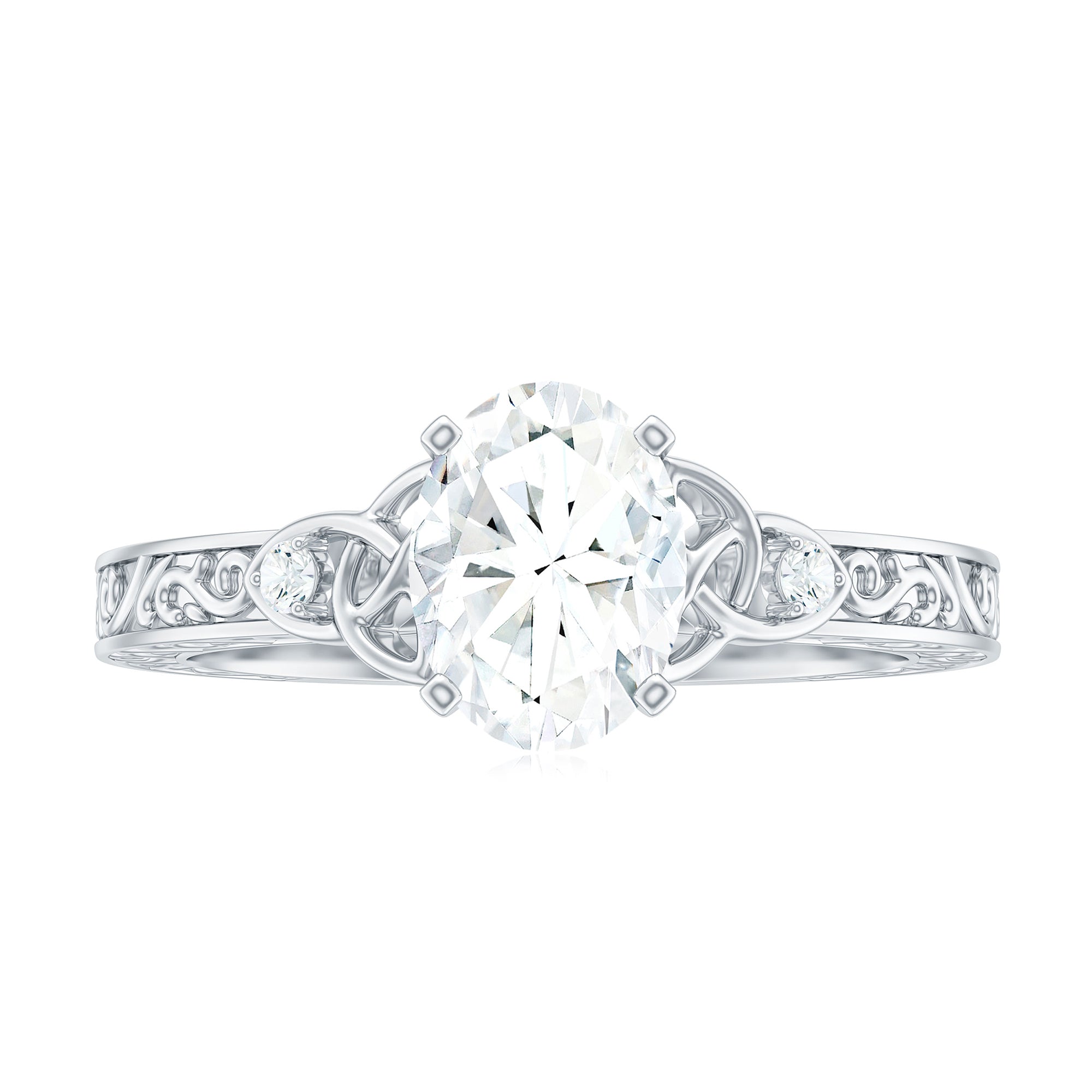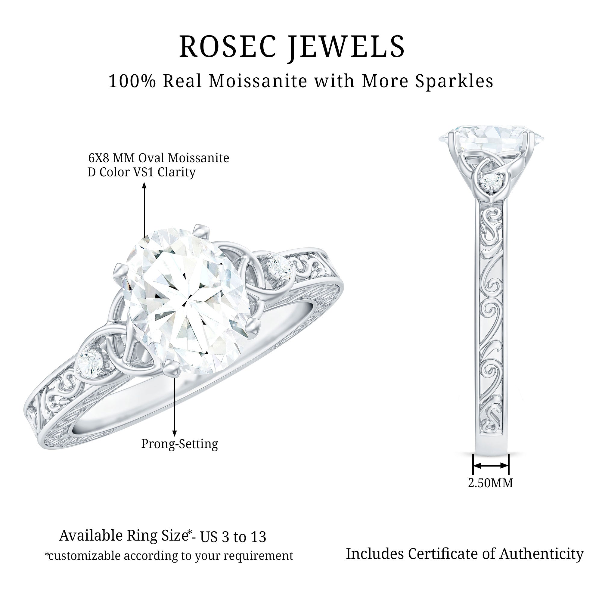 6x8mm Oval Cut Moissanite Celtic Engagement Ring with Engraving Details
