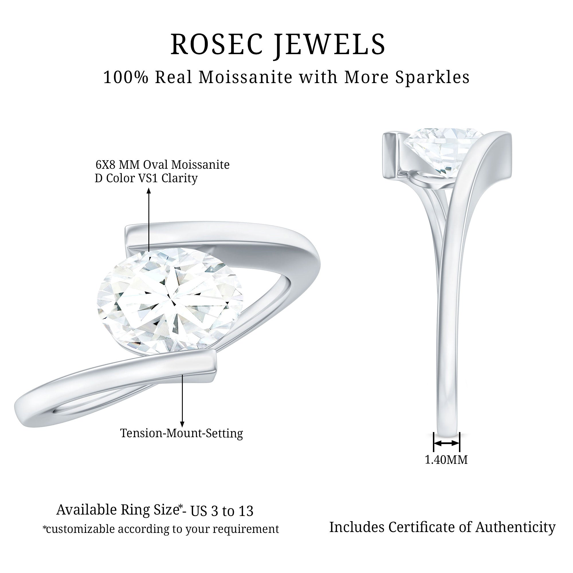 6X8mm Oval Moissanite Solitaire Engagement Ring with Bypass Shank