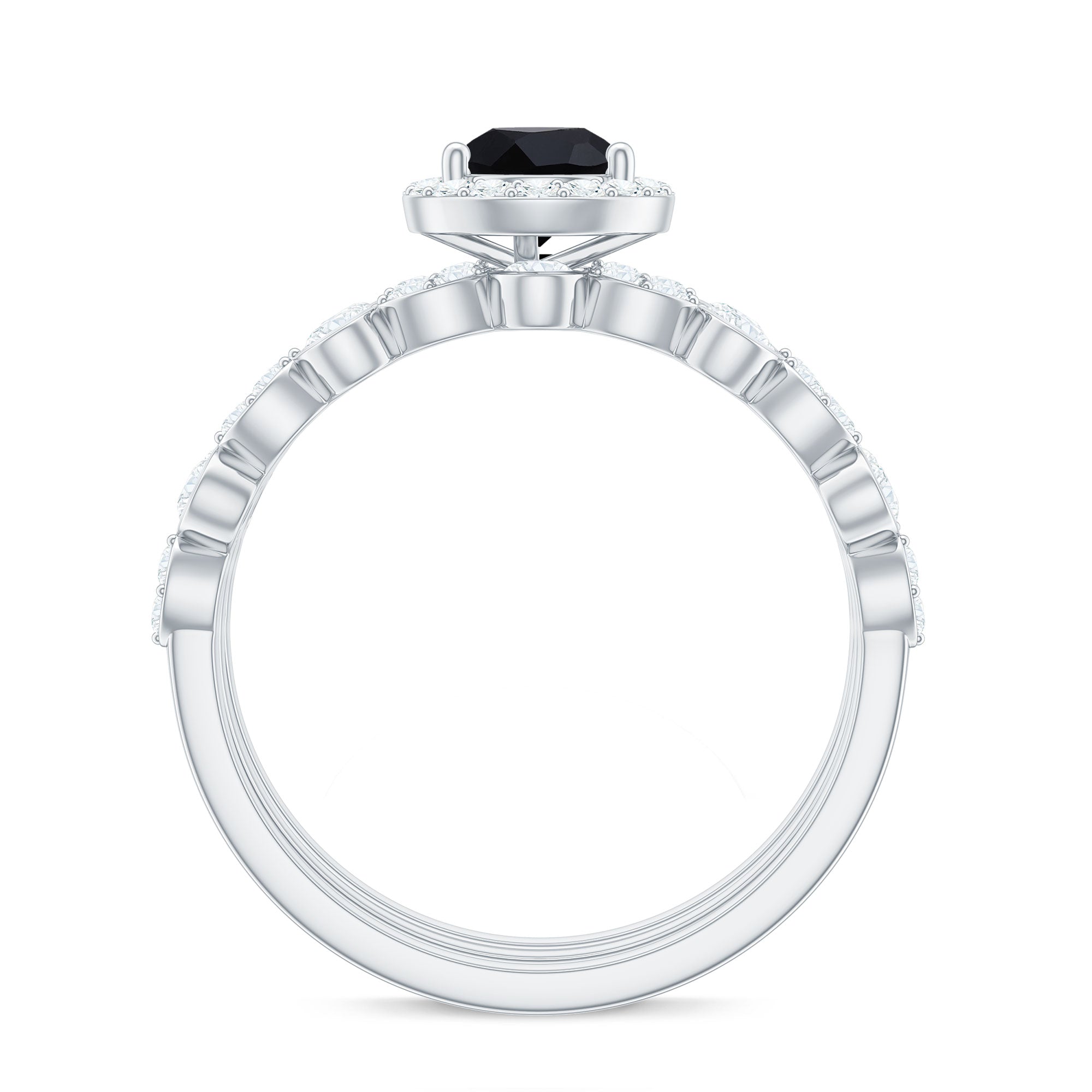 6x8mm Pear Cut Black Onyx Statement Ring Set with Moissanite Bands