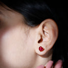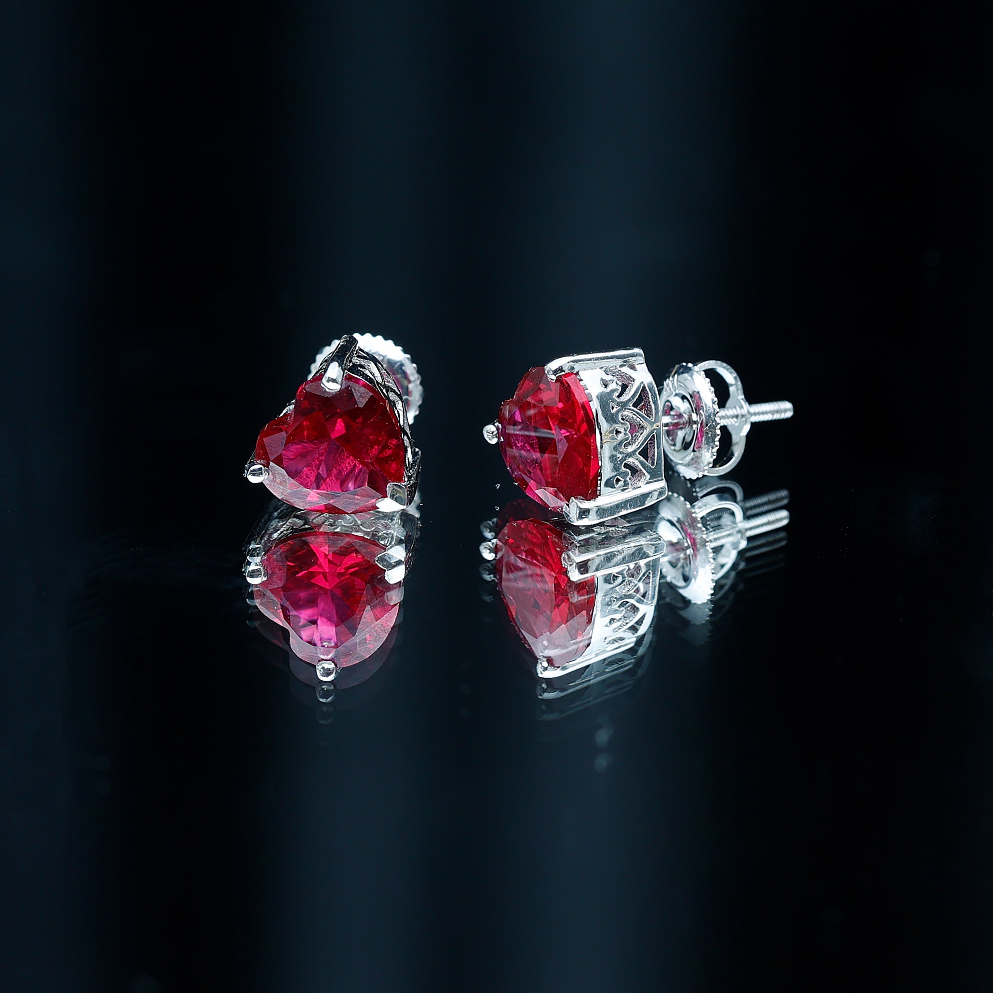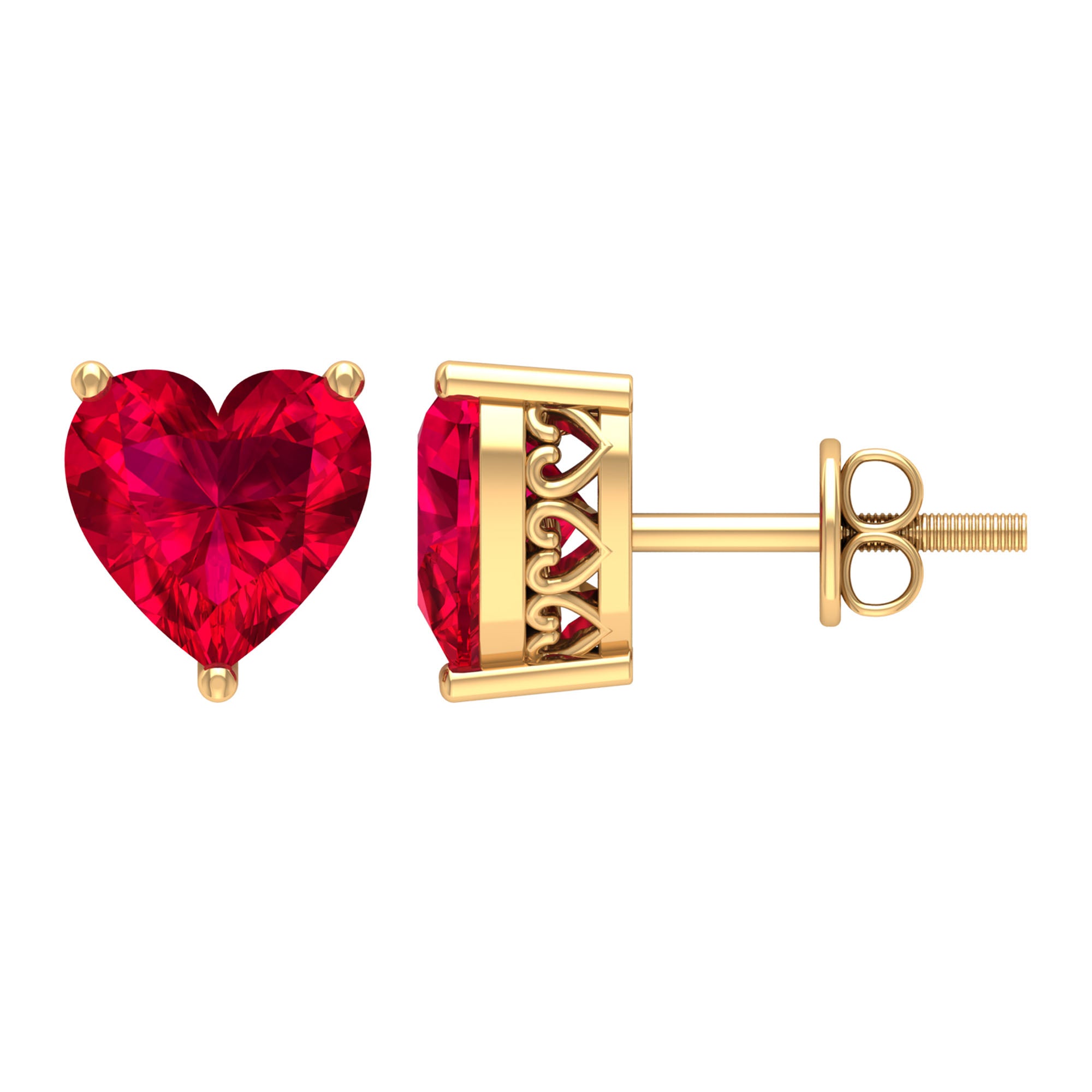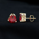 Surprise your beloved on this Valentines by gifting this gorgeous solid gold Heart Shape Stud Earrings. Adorned with Heart Shape Created Ruby Solitaire in 3-Prong setting with Screw backing.