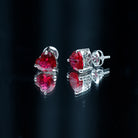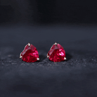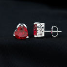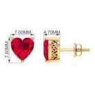 7 MM Heart Shape Created Ruby Solitaire Stud Earrings in 3-Prong Setting (AAAA Quality)
