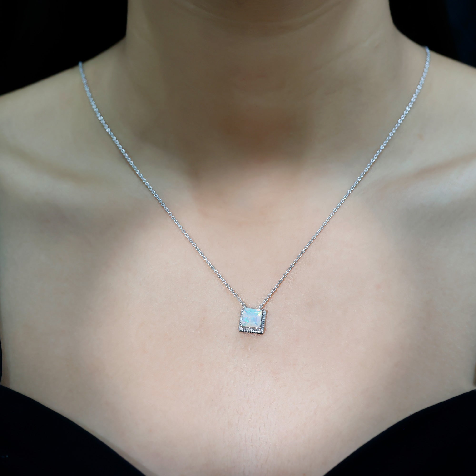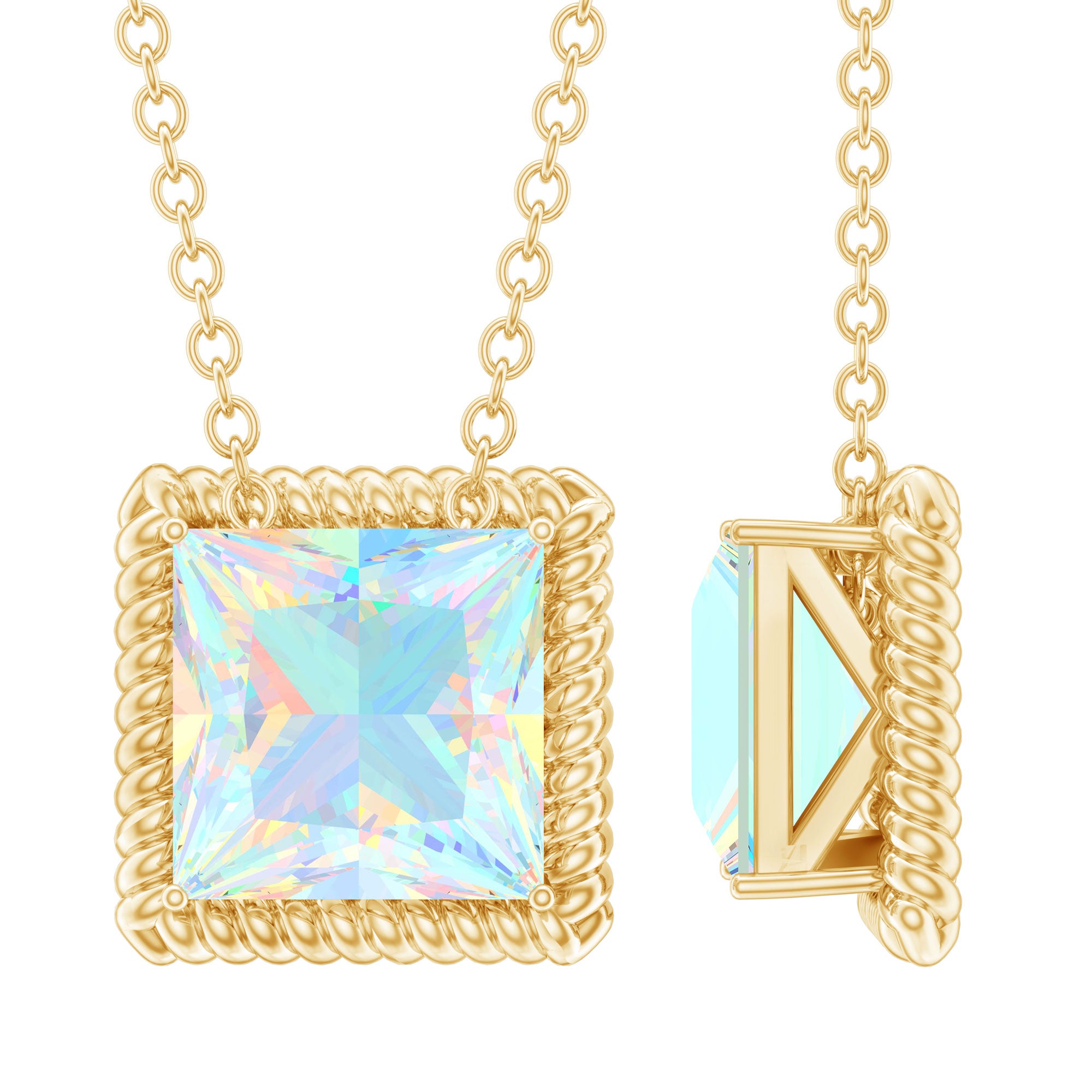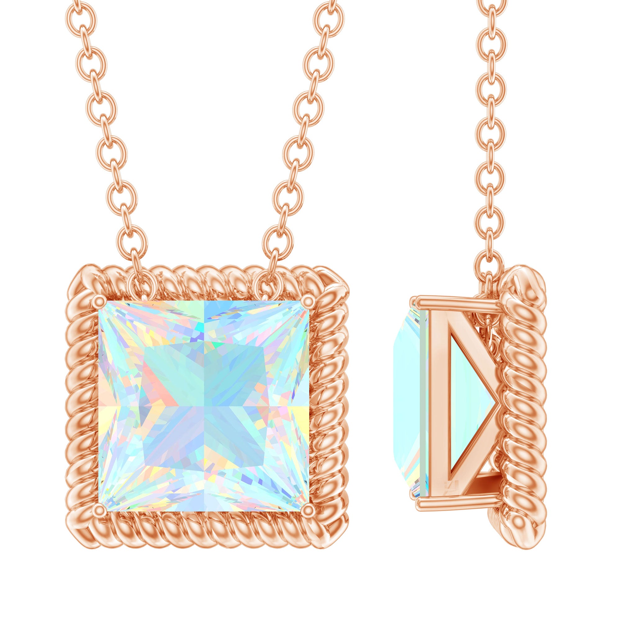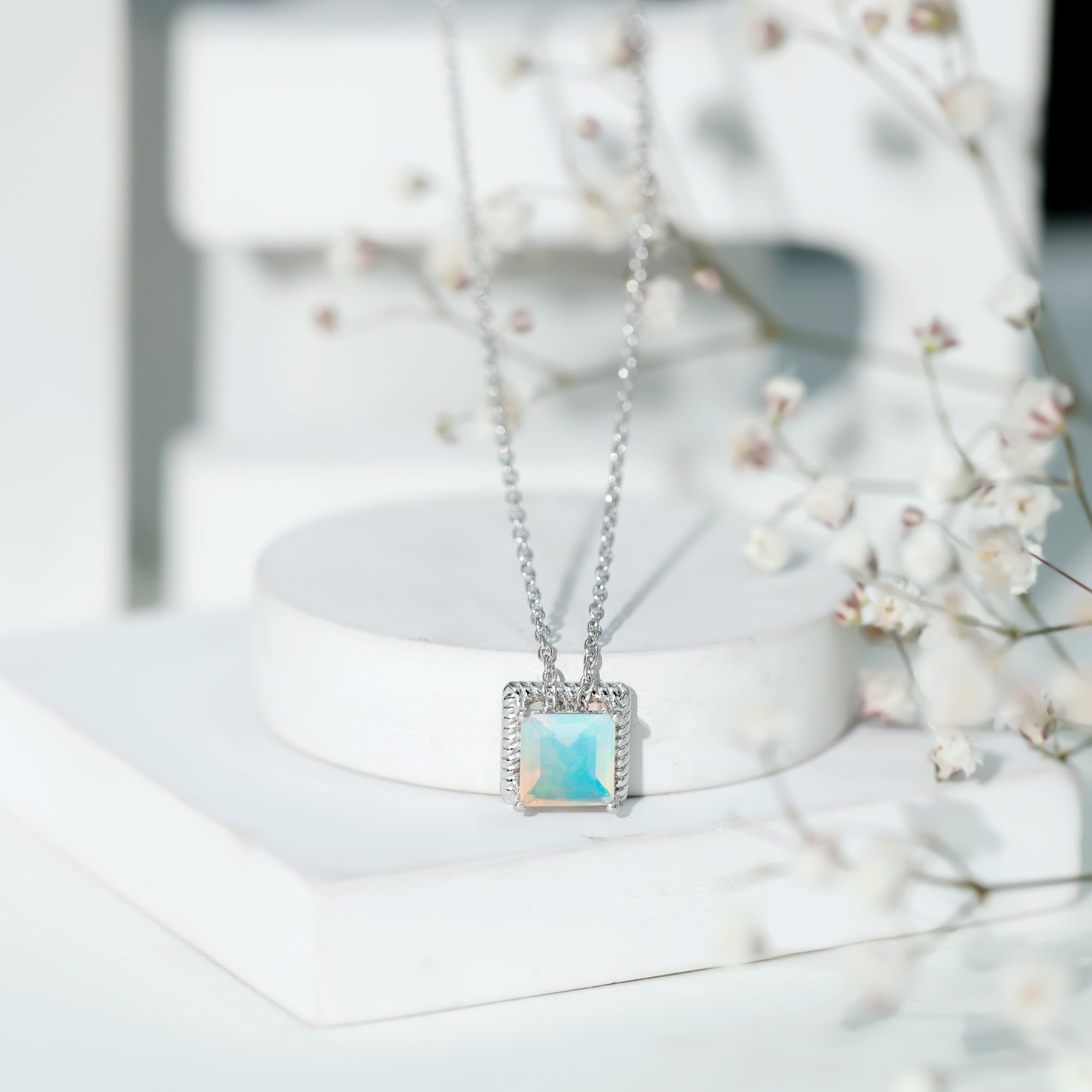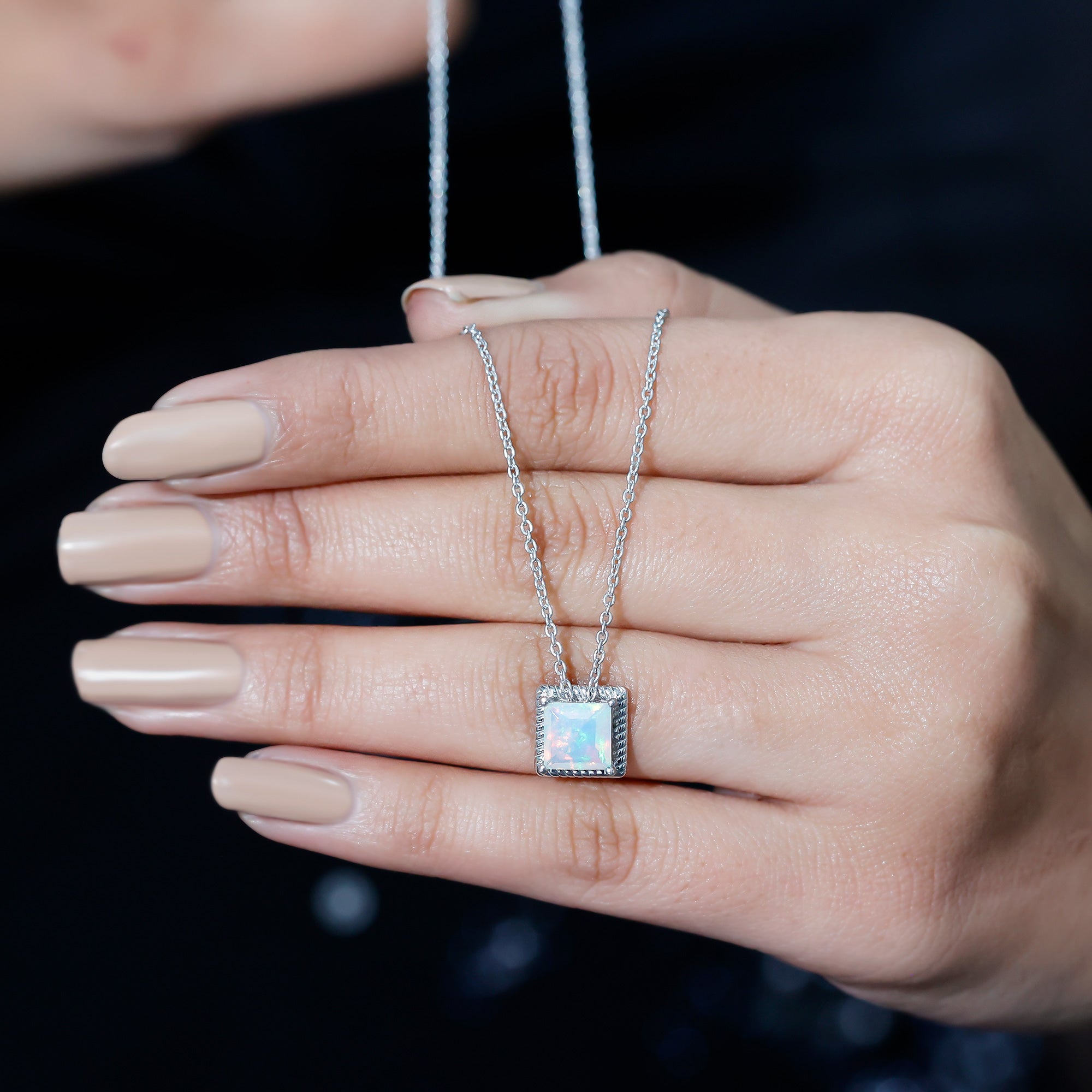 7 MM Princess Cut Ethiopian Opal Solitaire Pendant with Rope Frame Details