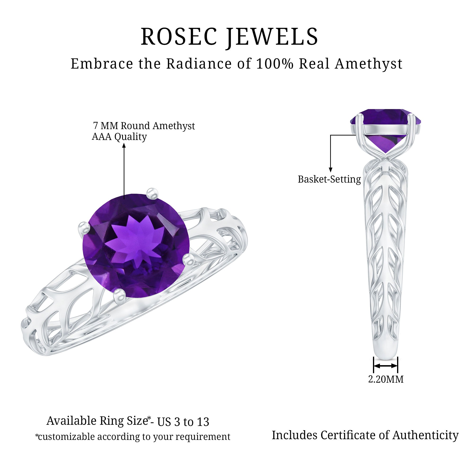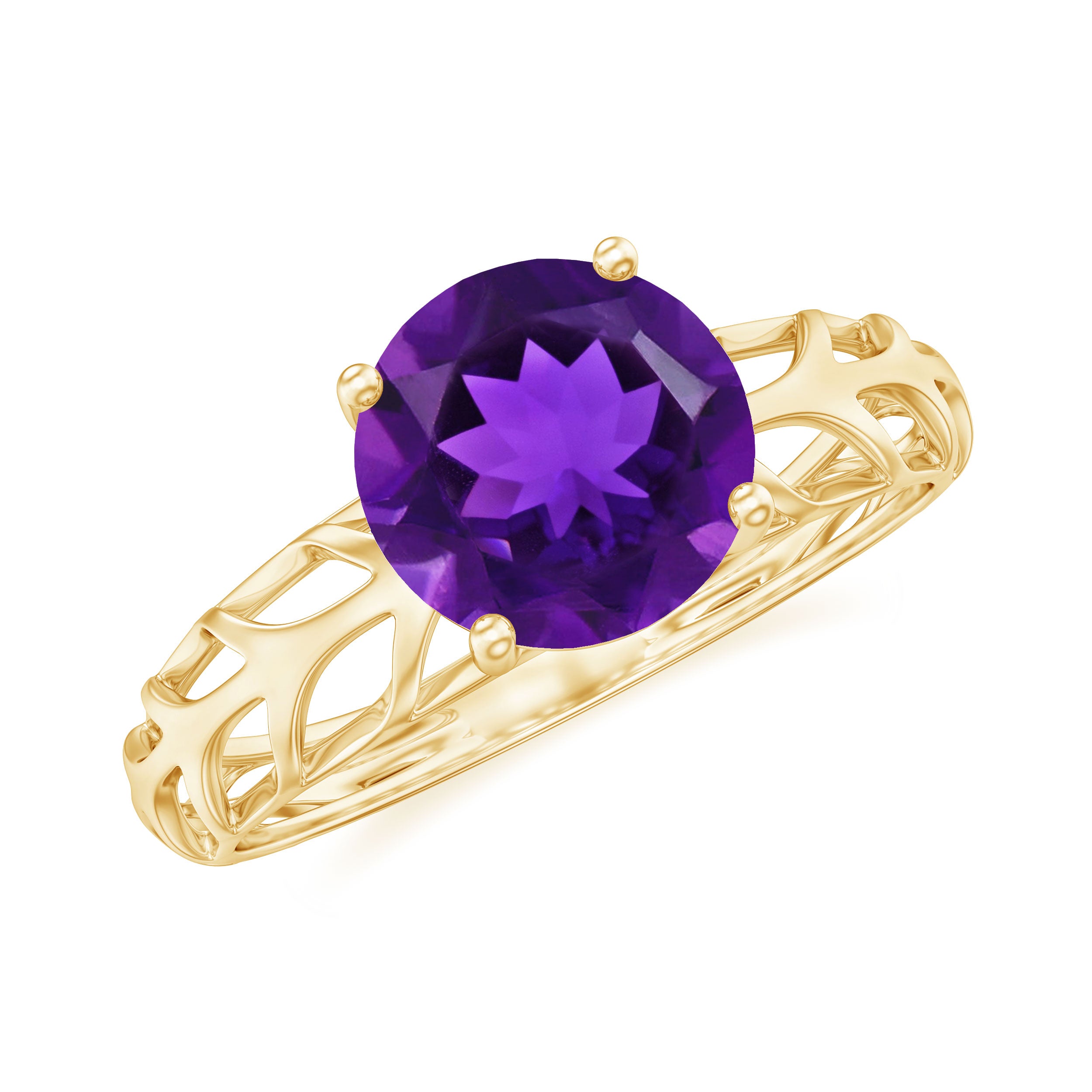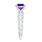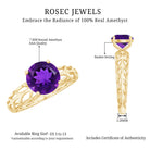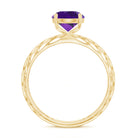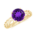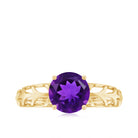 7 MM Round Amethyst Solitaire Engagement Ring with Gold Filigree Details