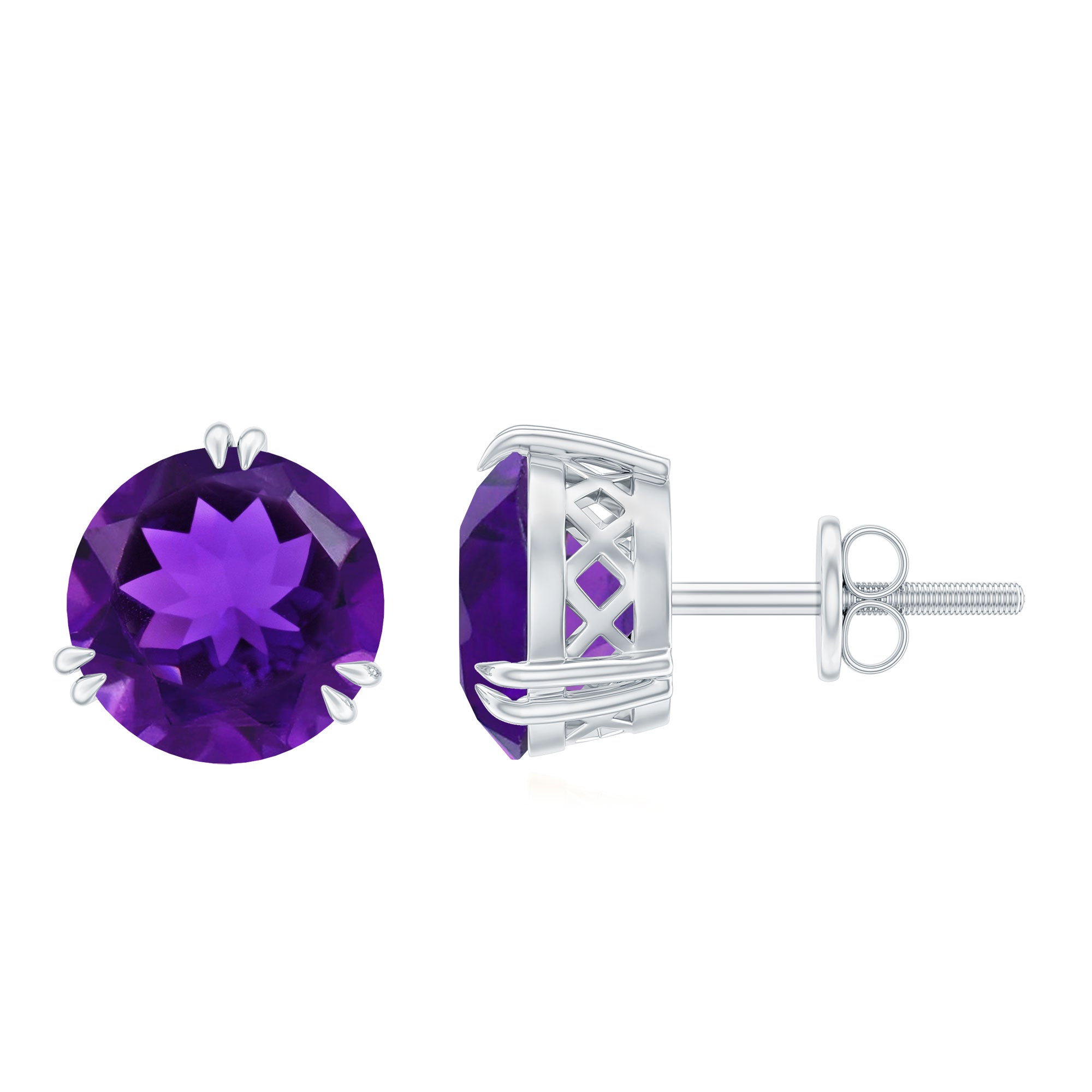 Natural 7mm Solitaire Amethyst Stud Earrings with Certificate