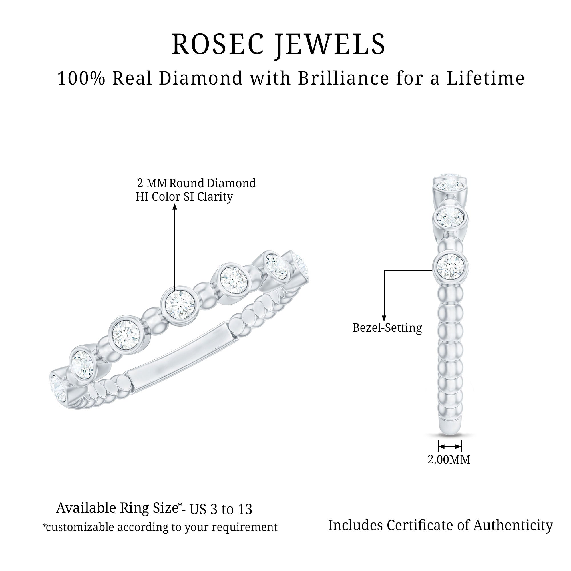 7 Stone Diamond Stackable Ring with Beaded Details