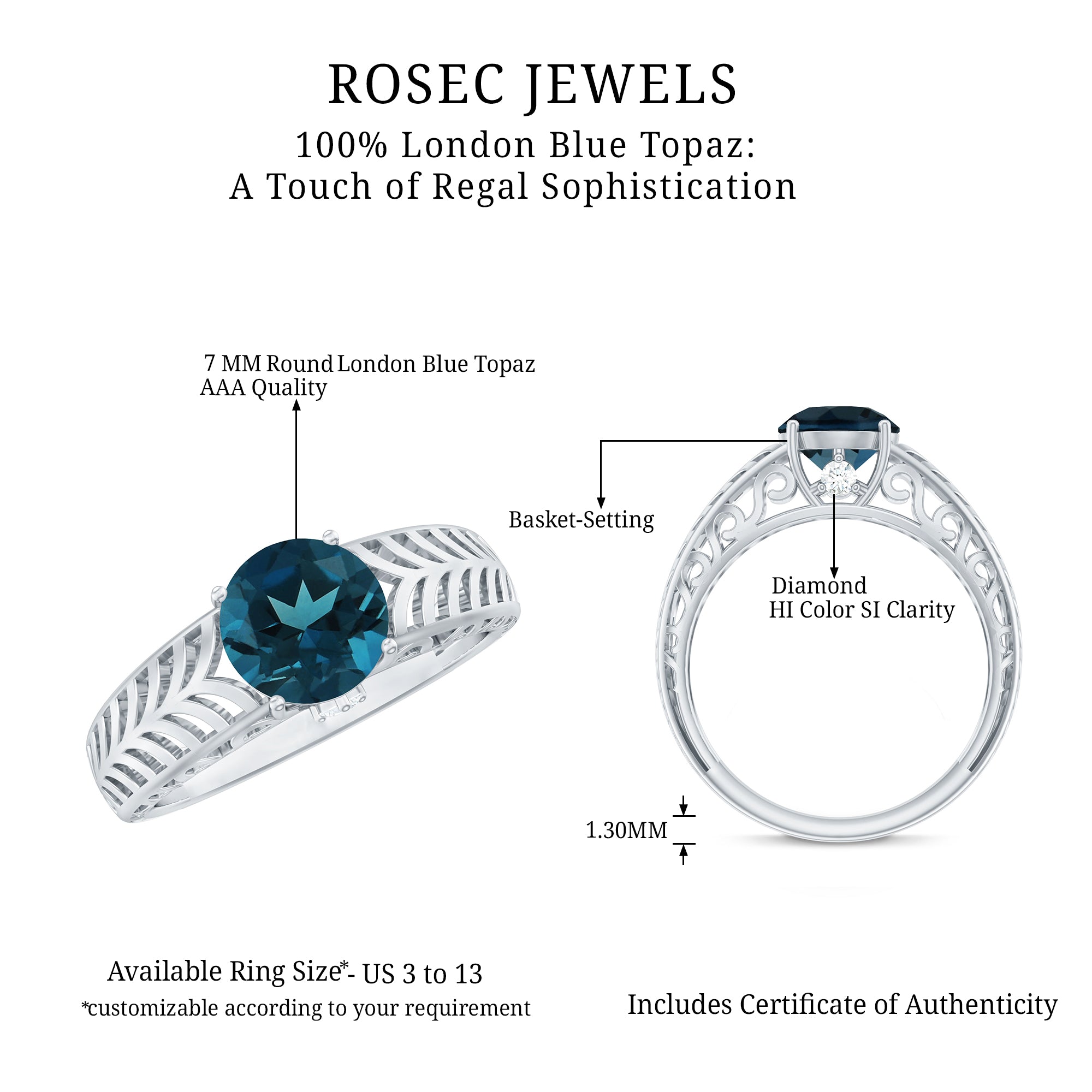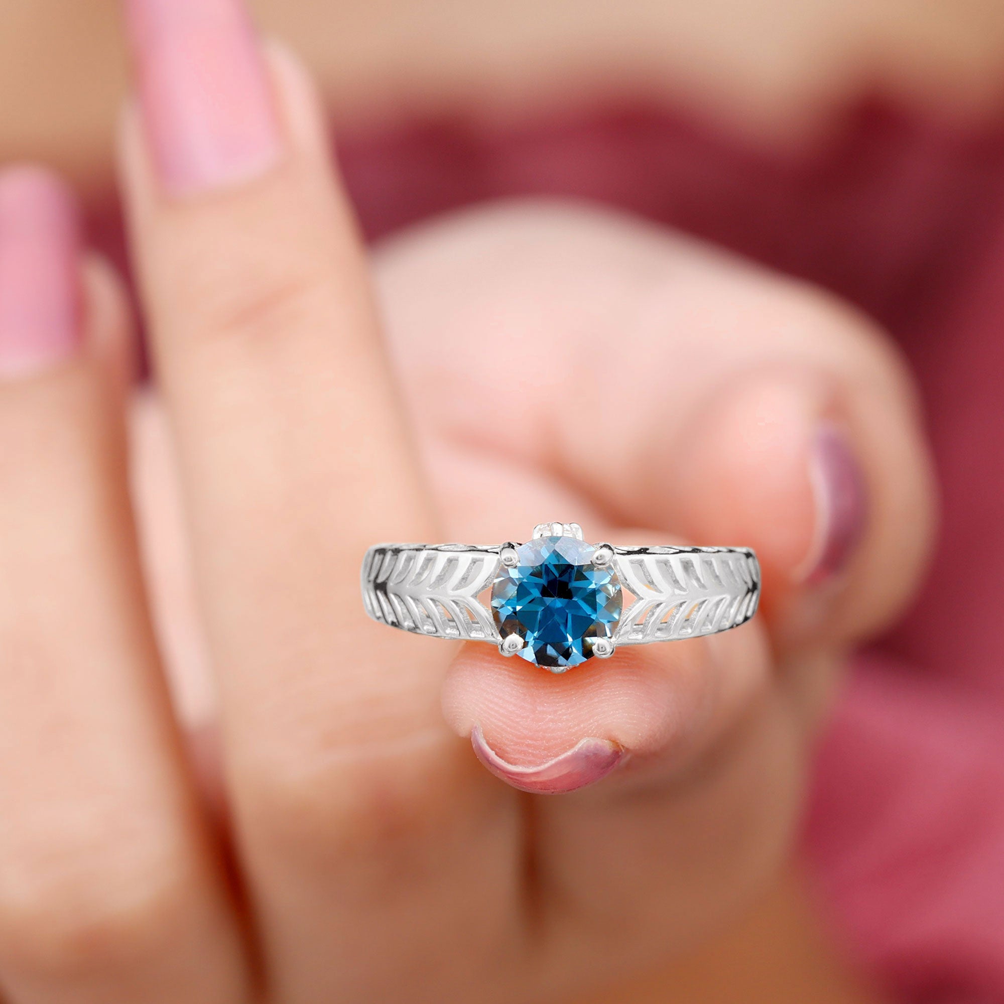 7mm Round London Blue Topaz Solitaire Engagement Ring with Certificate