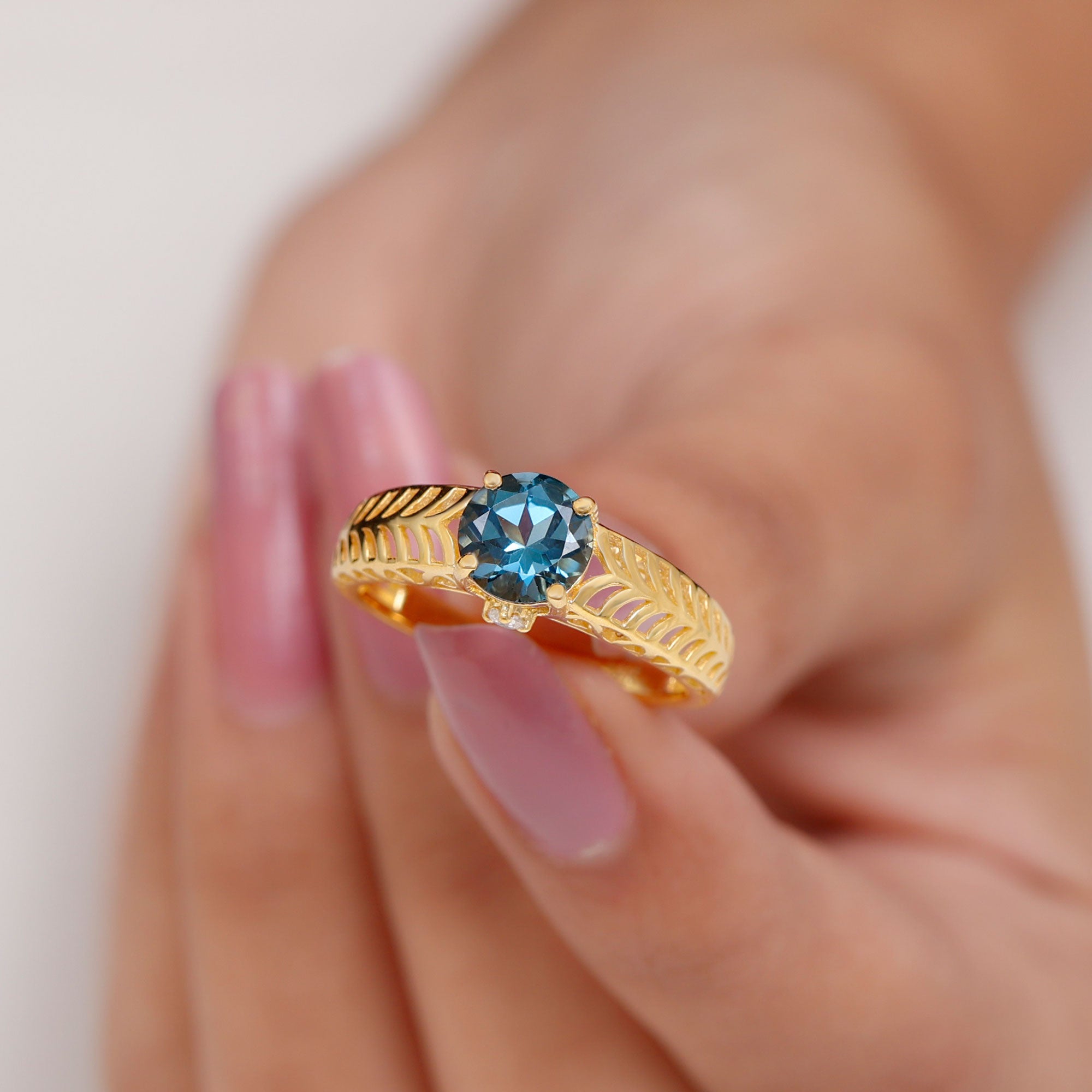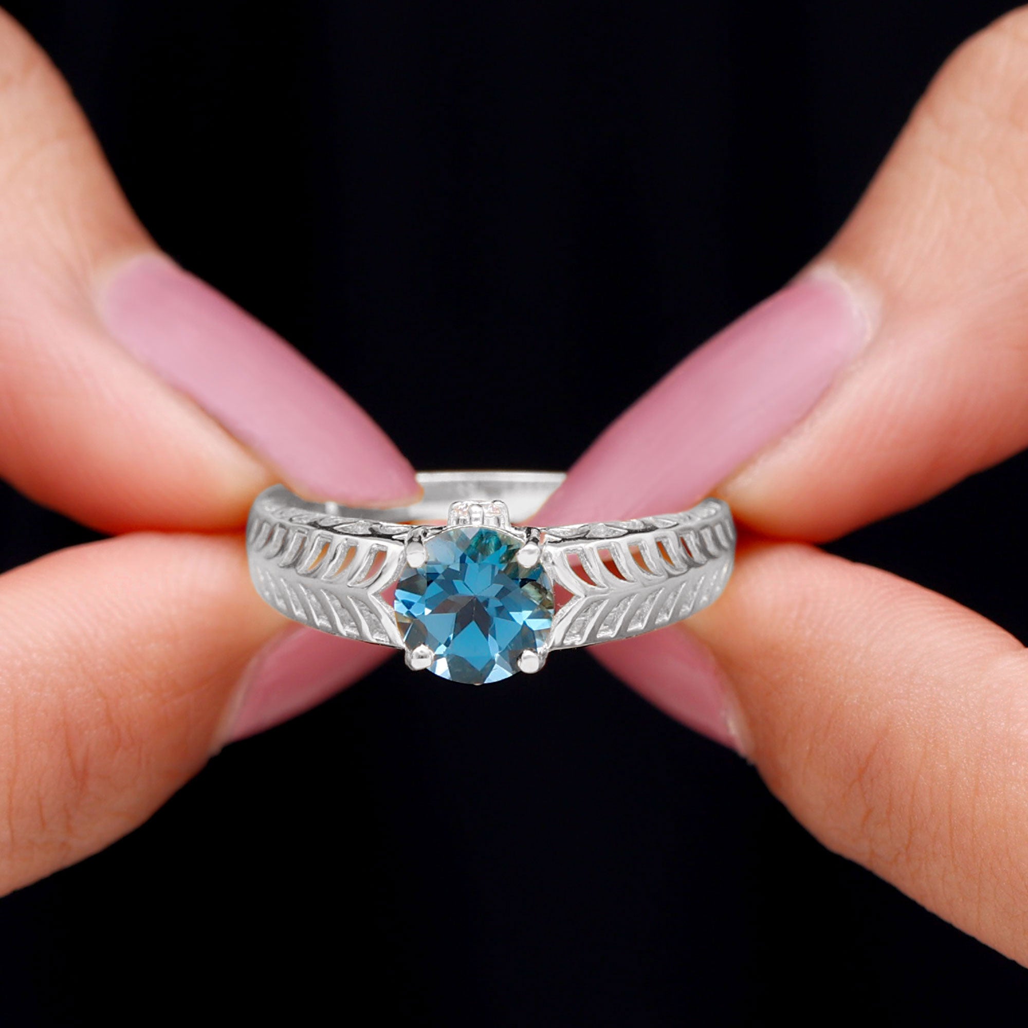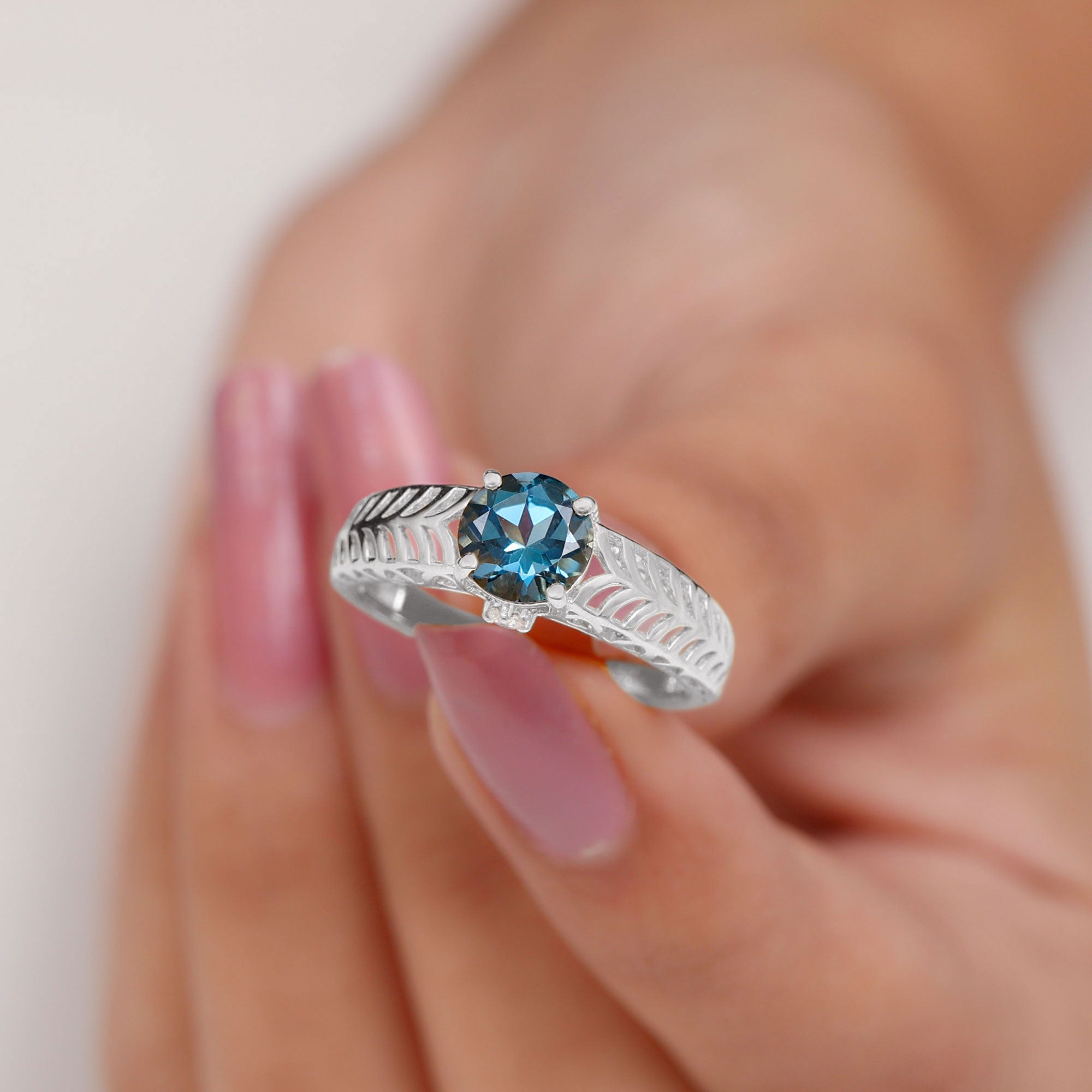 The striking design harmonizes with classic elegance in this exquisitely crafted London Blue Topaz Solitaire Ring, intended for those who value something genuinely exceptional. The London Blue Topaz Engagement Ring merges vintage influences with a contemporary essence, resulting in a piece that is both ageless and distinctive. It showcases an 7MM round london blue topaz gemstone, meticulously set in a prong setting. This solitaire design maintains simplicity while still delivering a powerful impression, having a hidden style diamond on the shank. What distinguishes this Real London Blue Topaz Ring is the elaborate cut-out work on the band. The intricate patterns etched into the band contribute a vintage flair and infuse an artistic quality to the entire piece. It is a subtle detail that conveys a great deal, highlighting craftsmanship and style in the most elegant manner. This Solitaire Engagement Ring is an excellent selection for an engagement or any significant occasion you wish to commemorate with something beautiful and personal. Constructed with AAA quality natural London Blue Topaz, this December Birthstone Ring provides both resilience and allure. Its considerate design guarantees comfort while drawing attention to the striking center stone and the ornate band. Whether you are preparing for a proposal or simply seeking a standout piece, this ring is designed to be cherished.