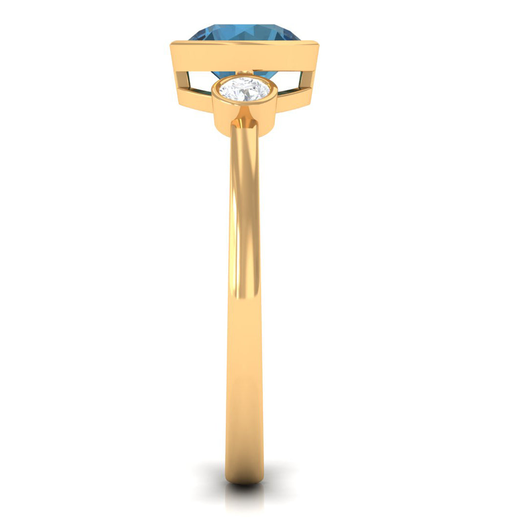 Celebrate love with enduring elegance through this exquisite Solitaire Engagement Ring. Showcasing a brilliant 7 MM round shape London Blue Topaz securely set in a sleek bezel setting with two round shape diamond accents set on both sides in a bezel setting, this Blue Topaz Solitaire Ring harmonizes simplicity and sophistication in a truly graceful manner. The beautiful design allows the center stone to radiate brilliantly, making it an ideal selection for those who value classic aesthetics with a contemporary flair. Designed for significant occasions, this London Blue Topaz Ring serves as a heartfelt emblem of love, whether you are preparing for a proposal or commemorating a significant event. The bezel setting not only enhances its stylish appeal but also ensures the stone remains safe and secure, making it suitable for daily wear. Presented in an elegant jewelry box, this Bezel Solitaire Ring is perfect for gifting or as a cherished personal keepsake. Whether for an engagement, anniversary, or a sincere surprise, this Round Solitaire Ring is crafted to create unforgettable moments. Simple, sophisticated, and brimming with charm, this Bezel Engagement Ring embodies the love and memories you will treasure for a lifetime.