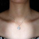 With the inspiration of vintage art, this Moissanite Pendant is handcrafted to adorn your neckline. This Art Deco Pendant is crafted with a 7X9 MM Emerald Cut Moissanite of D-VS1 Quality securely placed in Prong Setting that reflects a subtle shimmer. The center stone is surrounded by a double halo of smaller Moissanite, which enhances the appearance of the pendant as the petite stones catch the light in flashes and shine adorably. This Halo Necklace is accentuated with a petite round diamond Halo and studded bail, the pendant dangles with a sturdy cable chain that makes it beautifully sit on the neckline. This Emerald Cut Necklace will be shipped to you in premium packaging with a certificate of authenticity.
