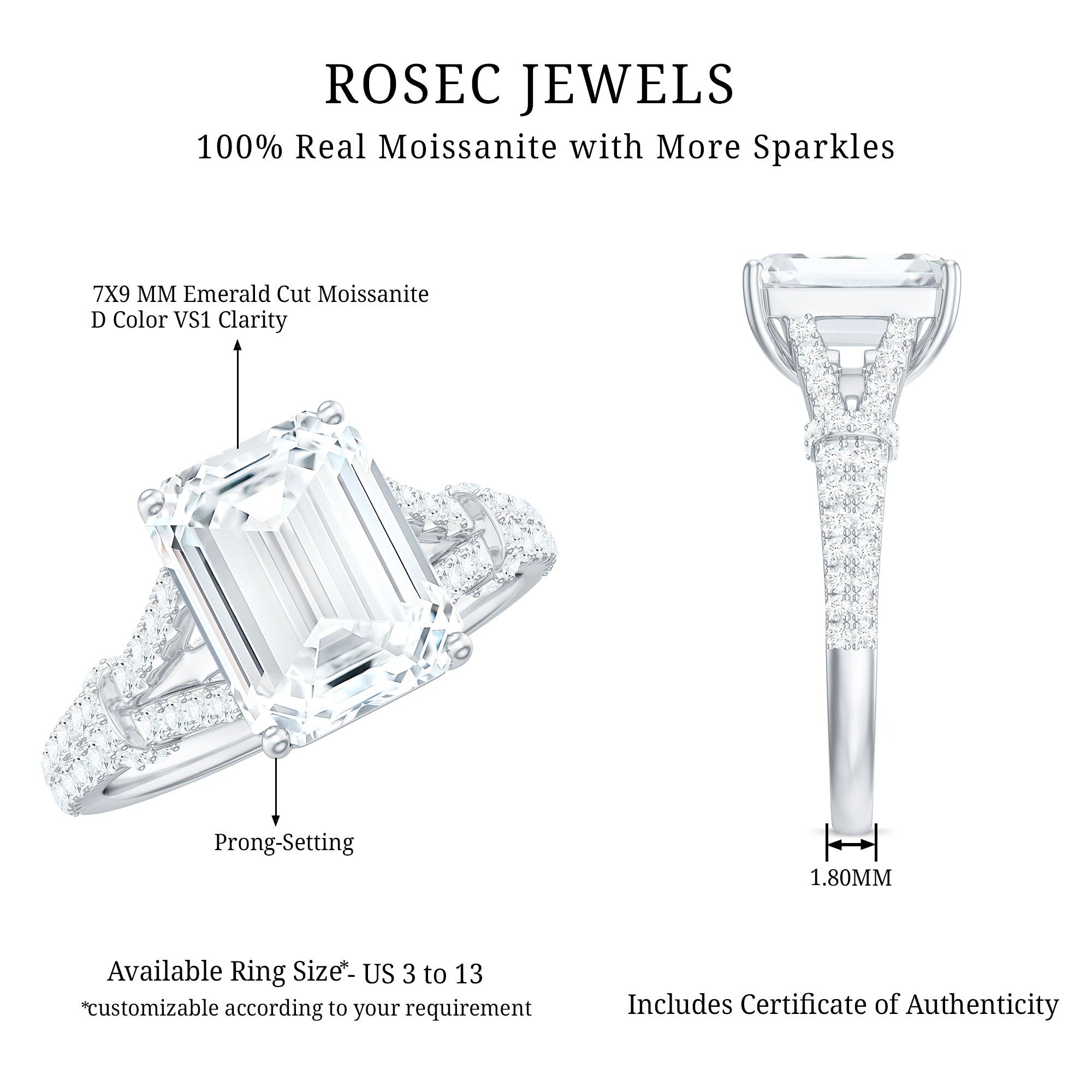 7x9 MM Emerald Cut Moissanite Split Shank Engagement Ring for Women
