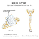 Capture forever in brilliance with this Emerald Cut Engagement Ring. Celebrate your once-in-a-lifetime moment with this stunning emerald cut moissanite ring, a dazzling testament to love and commitment. Designed with a captivating 7X9 MM emerald cut center stone, this certified moissanite ring glows with exceptional D-VS1 quality, delivering unmatched fire and brilliance that rivals traditional diamonds. The solitaire centerpiece is expertly mounted in a secure prong setting, complemented by a graceful split shank adorned with shimmering round moissanites, bringing the total carat weight to 3.56 ctw. A true statement of refined elegance, this solitaire engagement ring combines timeless artistry with modern sophistication, making it the ideal choice for those seeking premium moissanite jewelry. Whether youre drawn to the clean geometry of the emerald cut ring engagement style or the brilliance of a moissanite diamond engagement ring, this piece tells your unique story with every angle. Perfect for those who desire enduring shine without compromise, this moissanite ring for women adds a meaningful touch to your proposal or anniversary celebration. From luxurious moissanite engagement rings to signature womens solitaire engagement rings, this design stands as a cherished symbol of love, promise, and future memories.