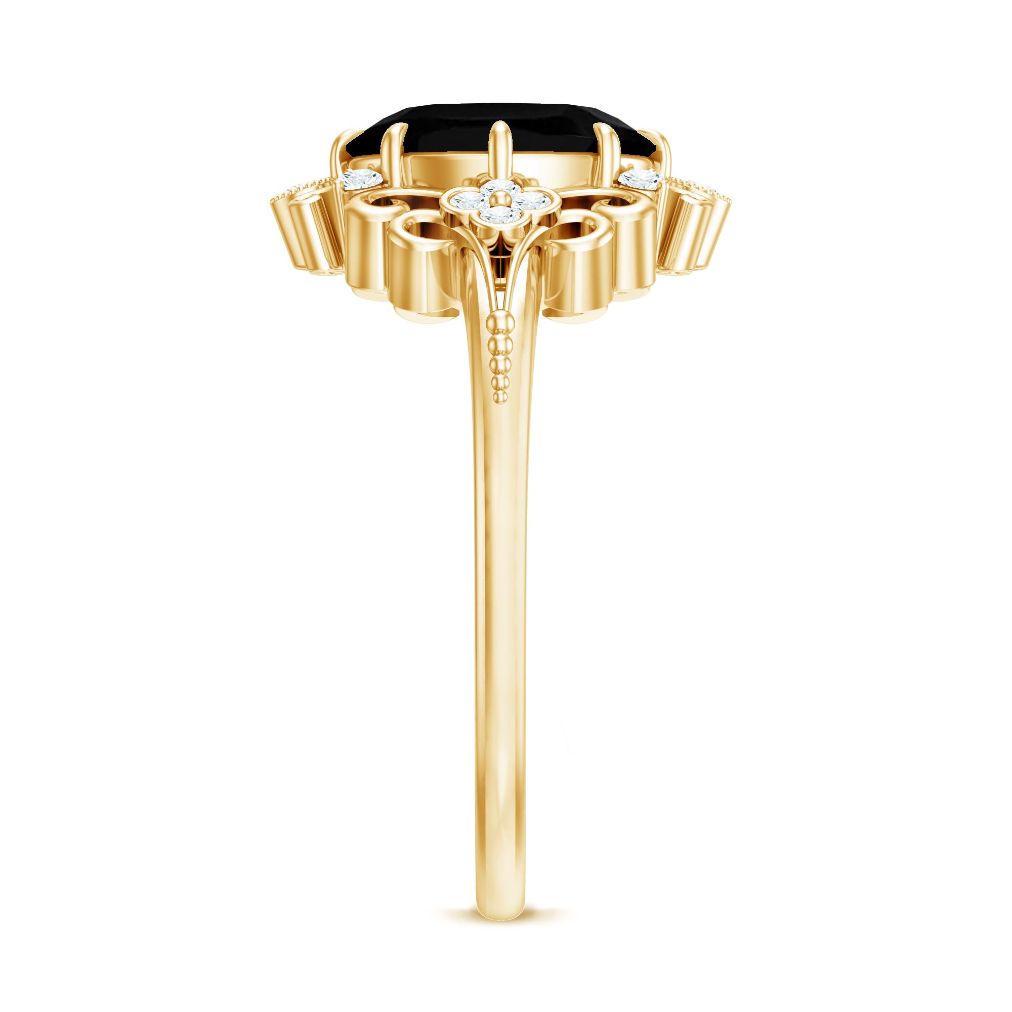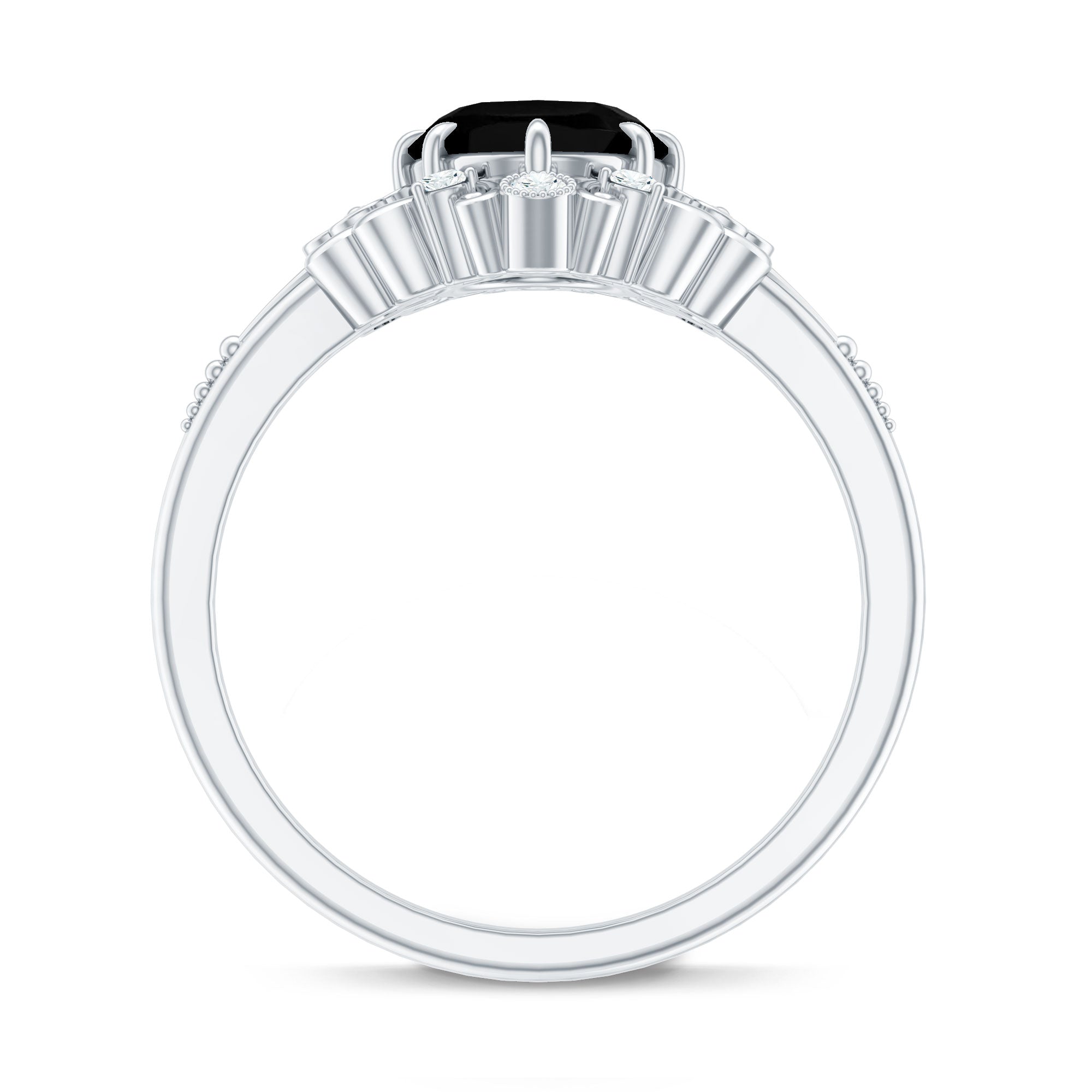 7X9mm Oval Cut Vintage Inspired Black Onyx Statement Ring with Diamond