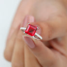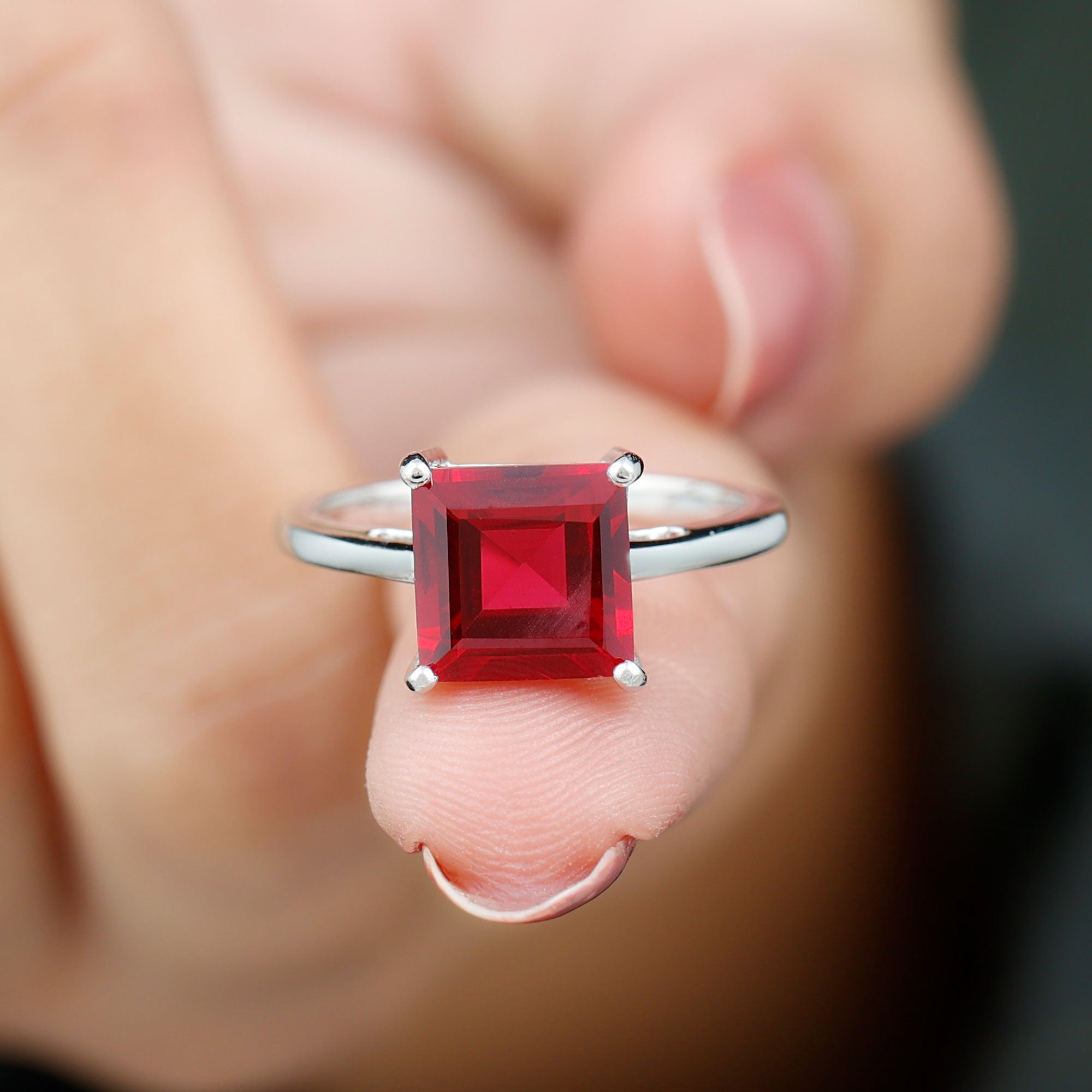 8.00 MM Princess Cut Created Ruby Solitaire Ring