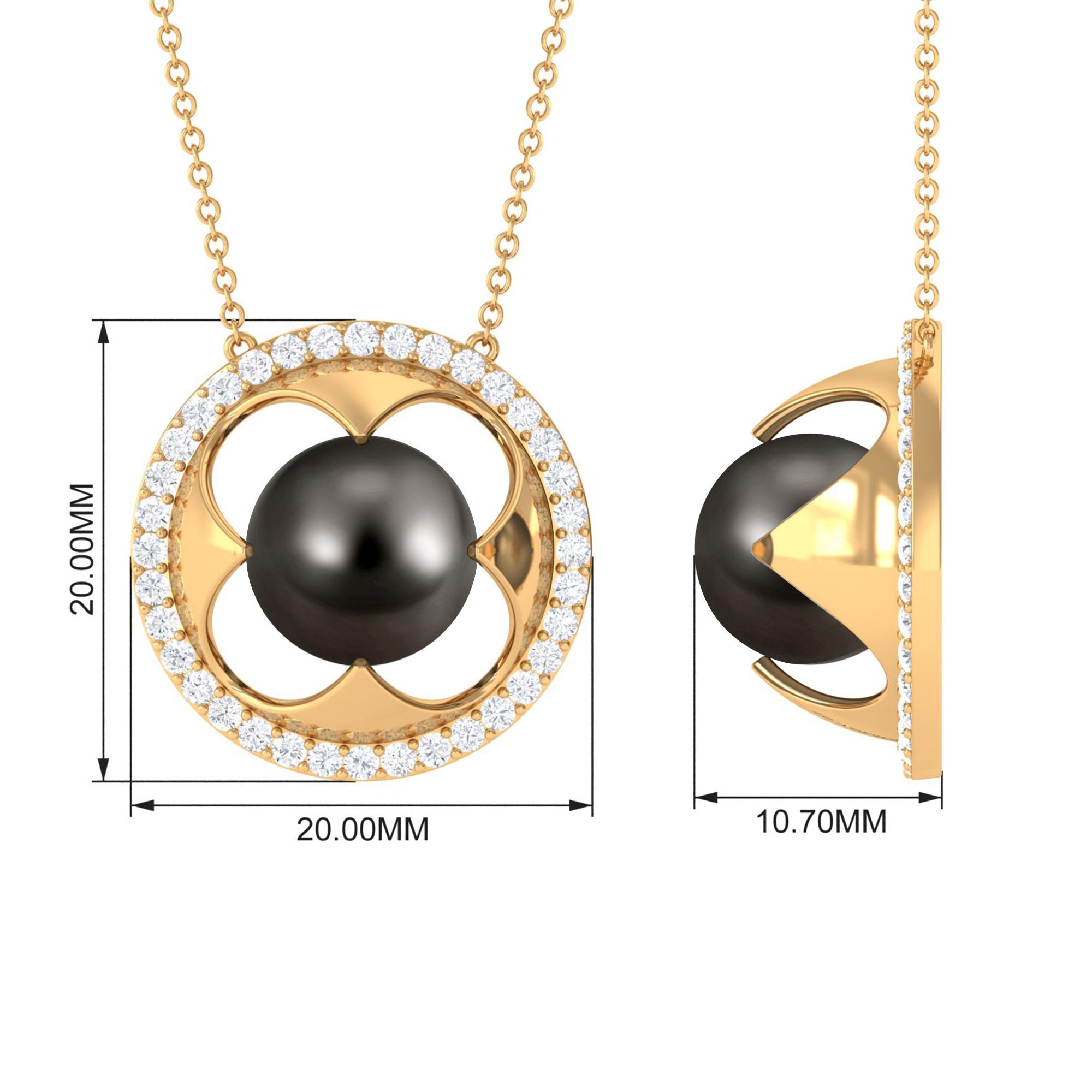 Tahitian Pearl exhibits AAA Quality and possess exotic color. Semi-Precious June Birthstone summons intelligence, and prosperity. It is Natural and Certified, helps in boosting vitality of the wearer. Its huge range of colorful overtones makes it a captivating and desirable gem. Diamond - HI-SI Quality exhibited by Brilliant Cut Diamond give justice to its incredible value. Diamond summons beauty, attractiveness and unbreakable love. It is Certified and helps in bringing success and luxury to the wearer. Its Durability and Luster is enhanced by Lab Created Treatment, to further make it a captivating and desirable gem.