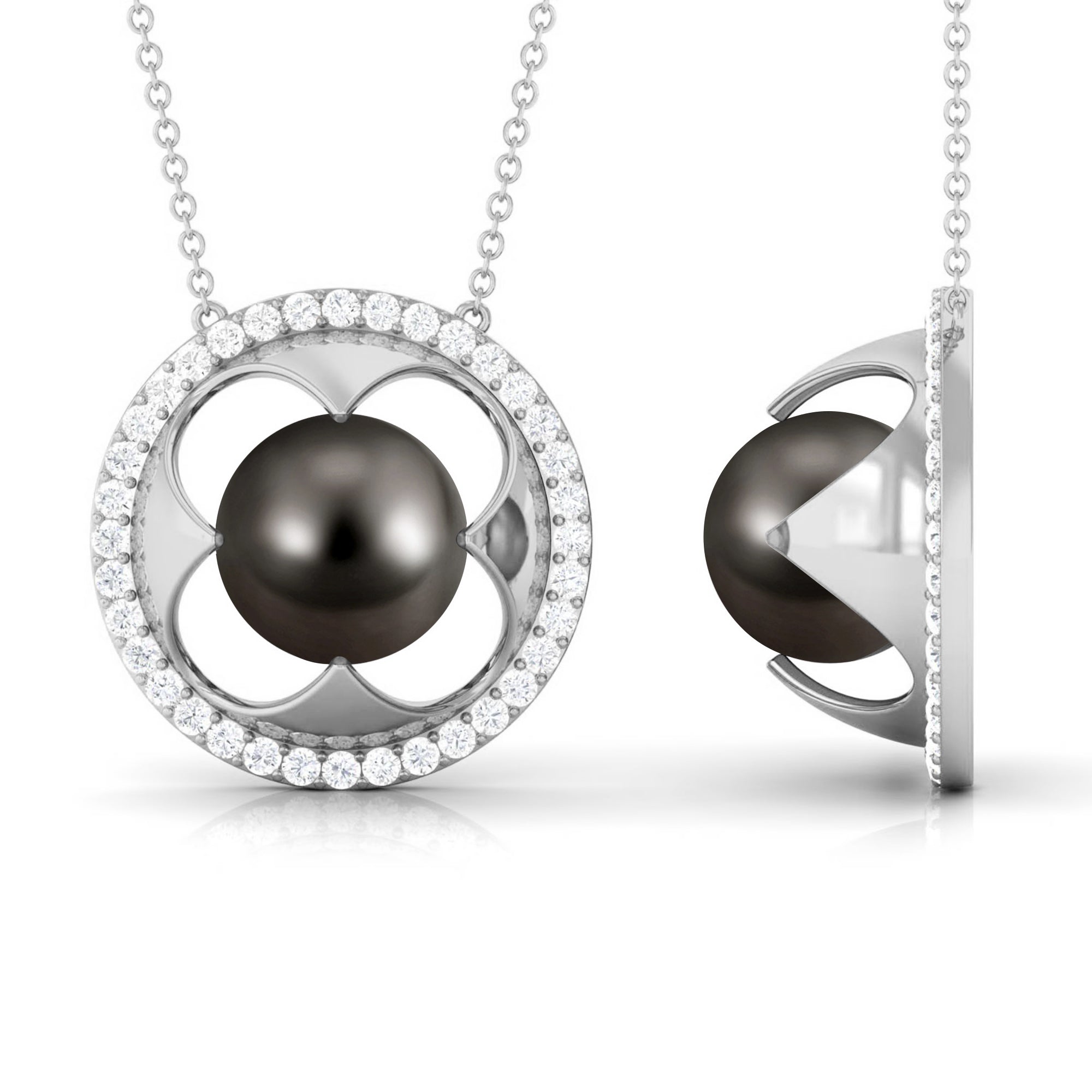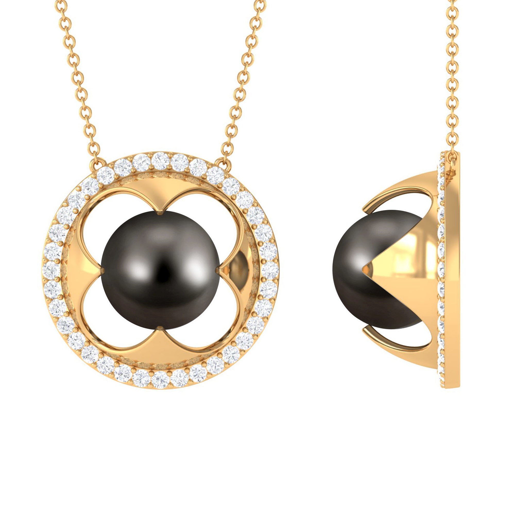 8.50 CT Solitaire Tahitian Pearl and Diamond Flower Necklace