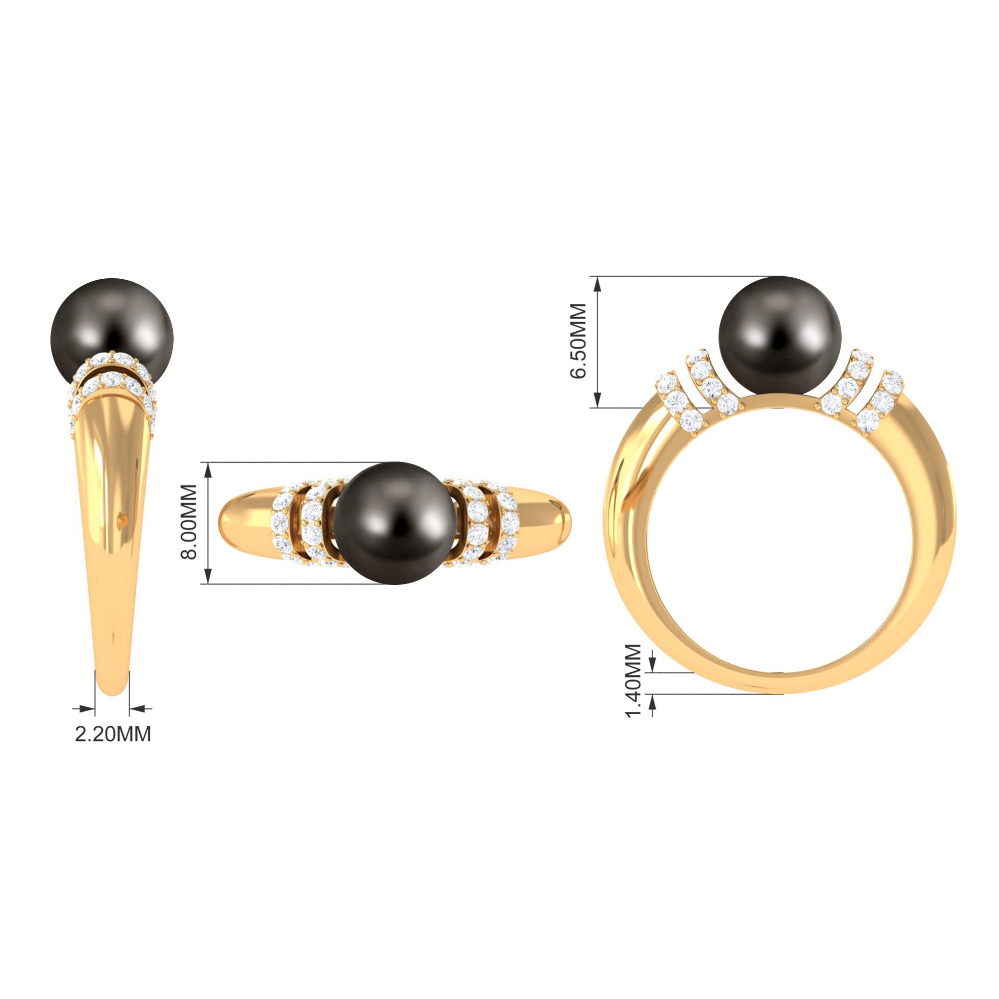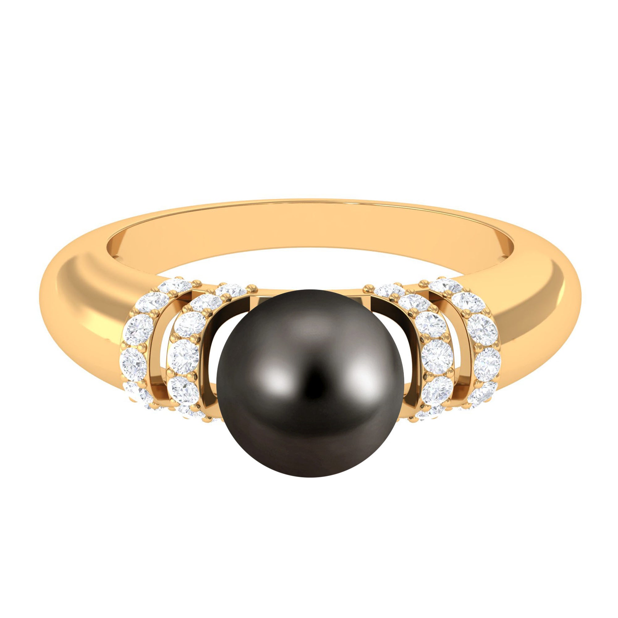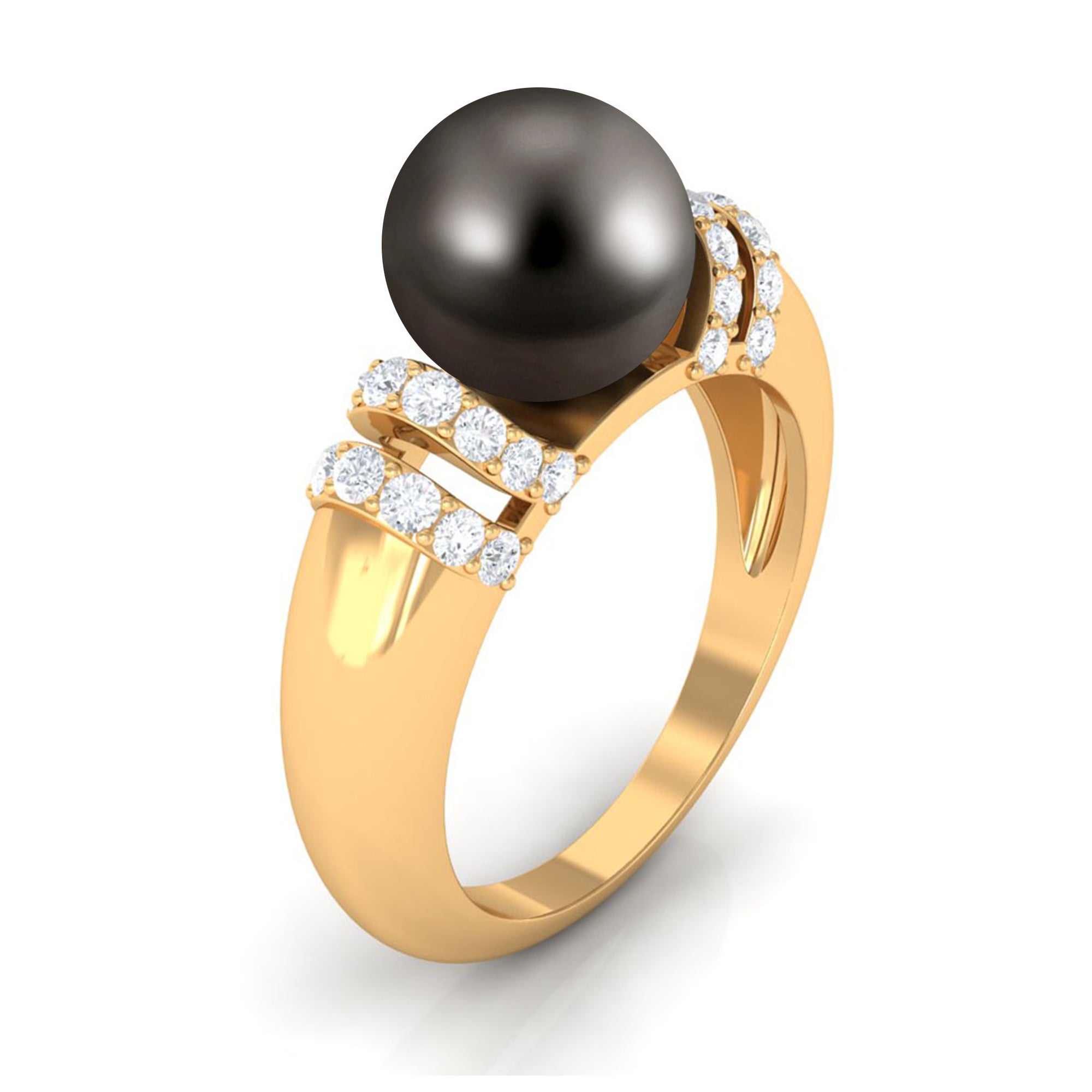 Looking for the perfect present for the love of your life, One thatll shine as bright as your love for her. This brilliant round shape Tahitian Pearl Engagement Ring is the perfect pick. Captivating Solitaire Engagement Ring is embellished with round shape Diamond held in Surface Prong Setting and crafted in gold metal to amplify the charm of this Ring.